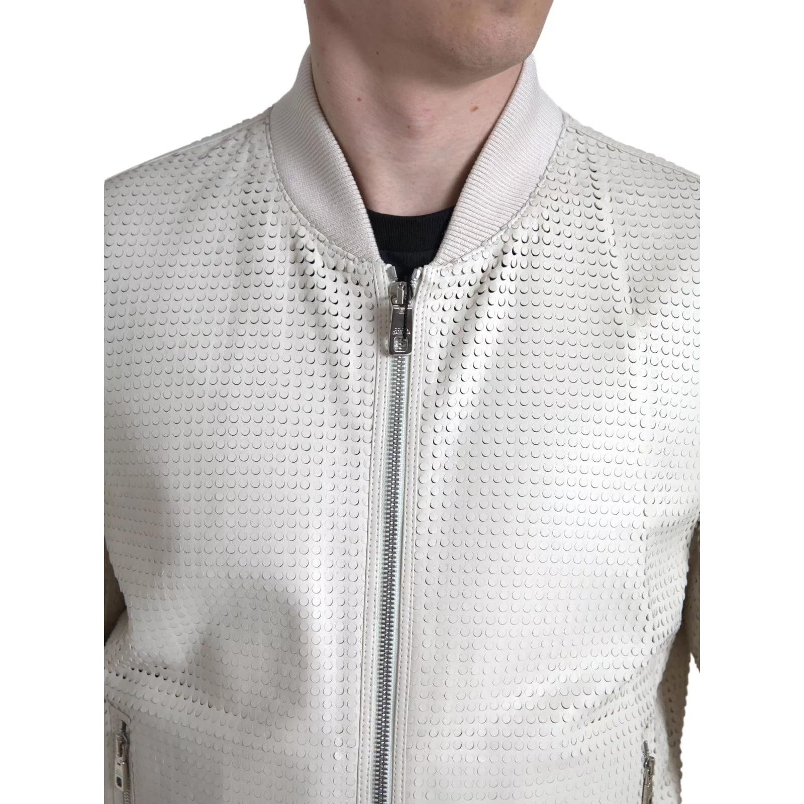 Dolce & Gabbana Off White LeatherPerforated Full Zip Jacket