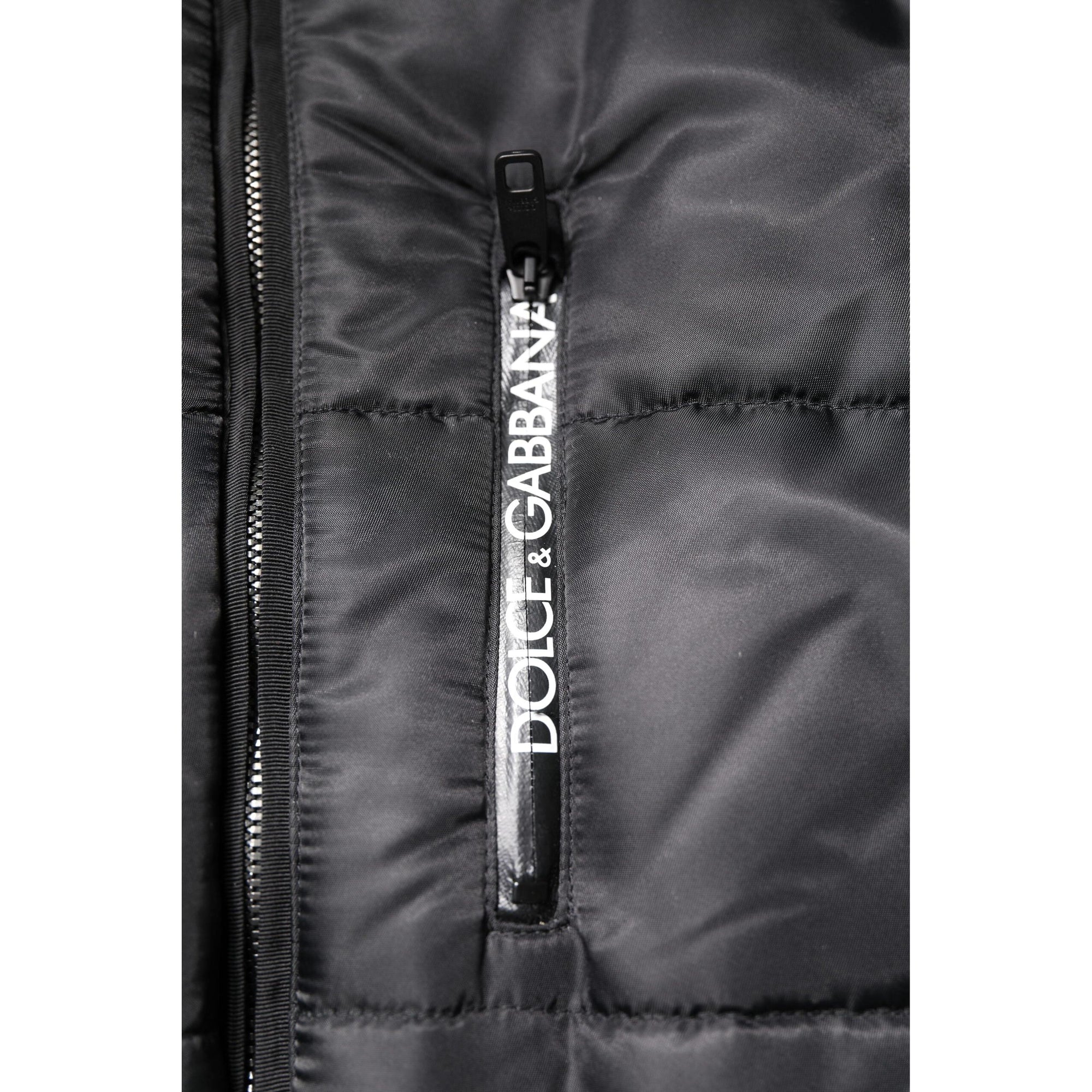 Dolce & Gabbana Black Nylon Full Zip Hooded Parka Jacket