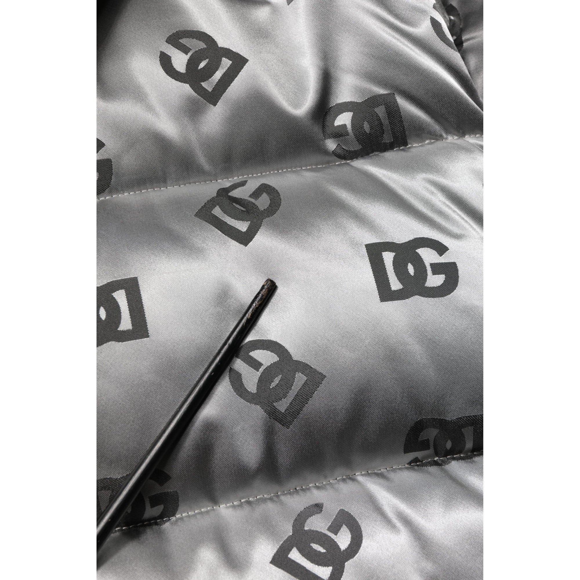 Dolce & Gabbana Silver Logo Full Zip Hooded Quilted Jacket