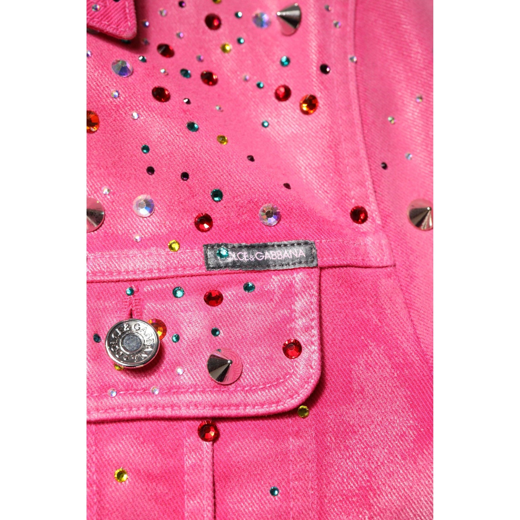 Dolce & Gabbana Pink Crystal Embellished Cotton Denim Jacket