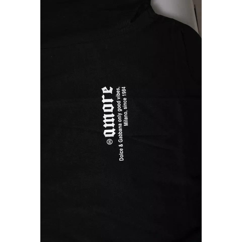 Dolce & Gabbana Black Amore Leopard Cotton Crew Neck T-shirt