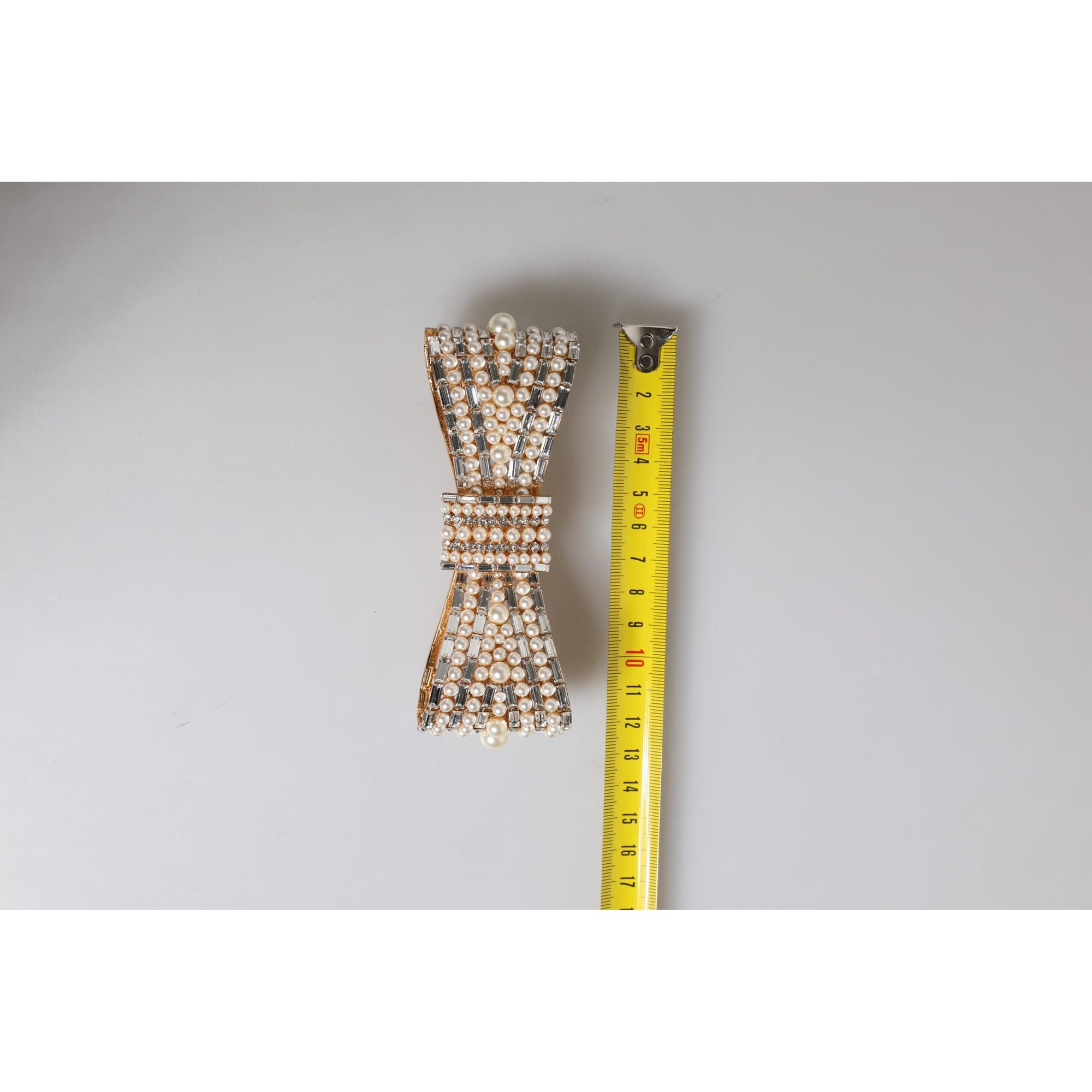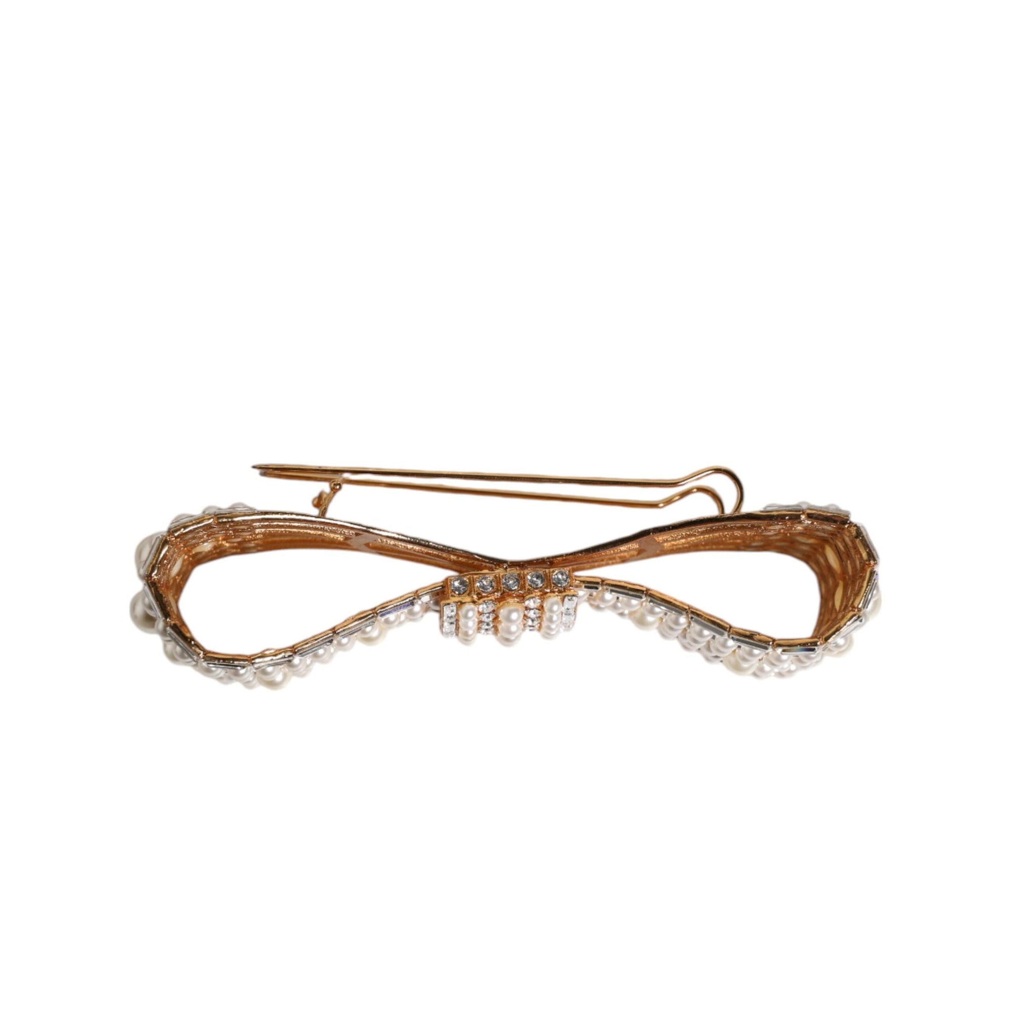 Dolce & Gabbana Gold Tone Brass Bow Crystal FauxPearl Embellished Brooch