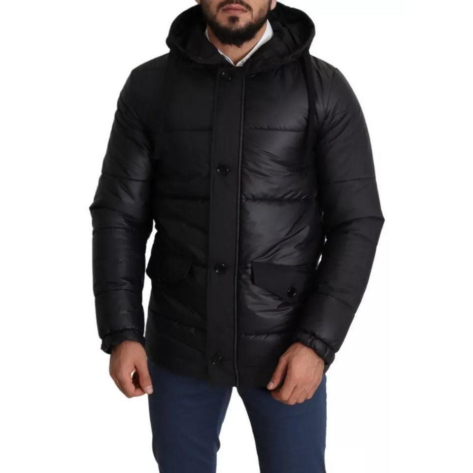 Dolce & Gabbana Black Hooded Polyester Men Coat Puffer Jacket