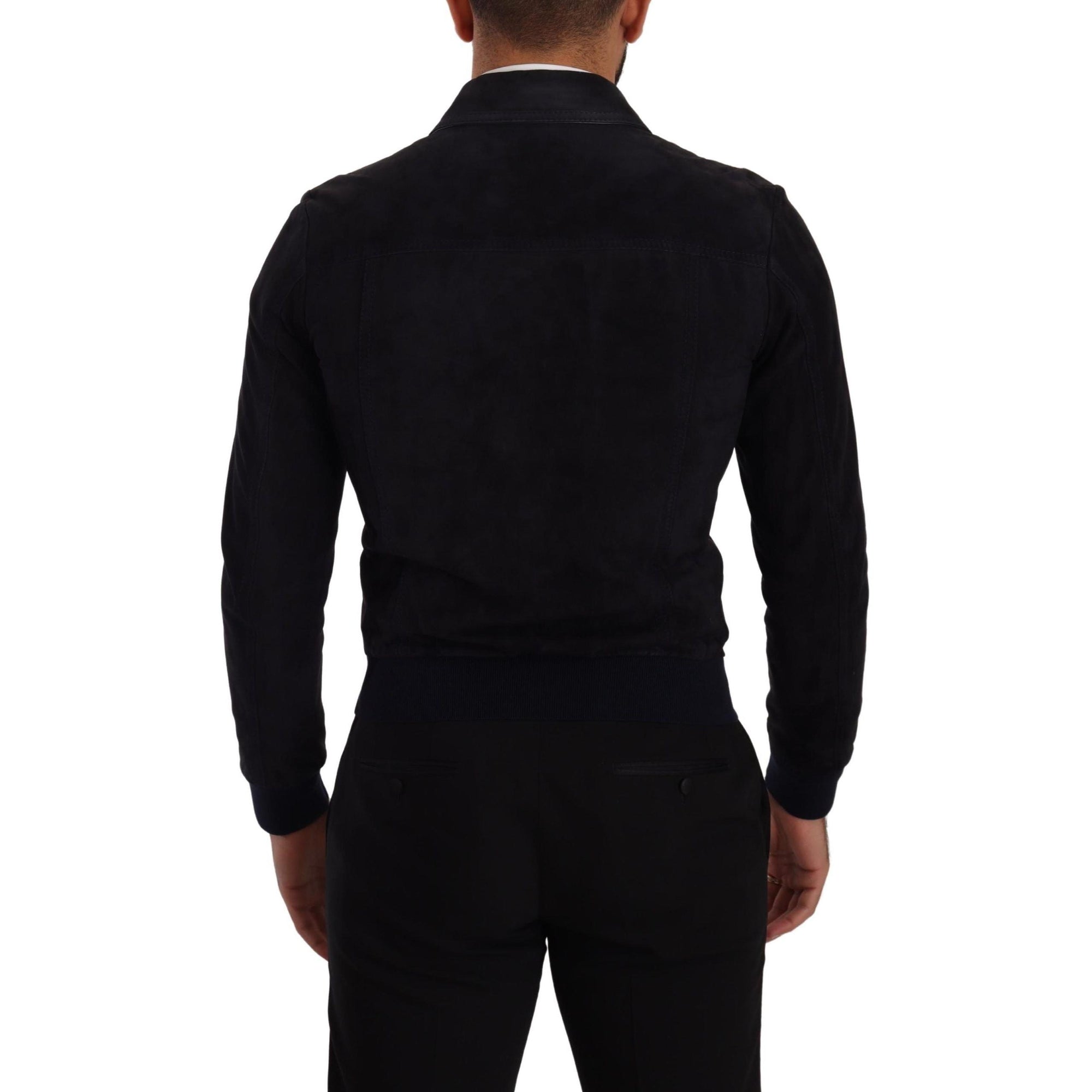 Dolce & Gabbana Elegant Blue Suede Short Jacket