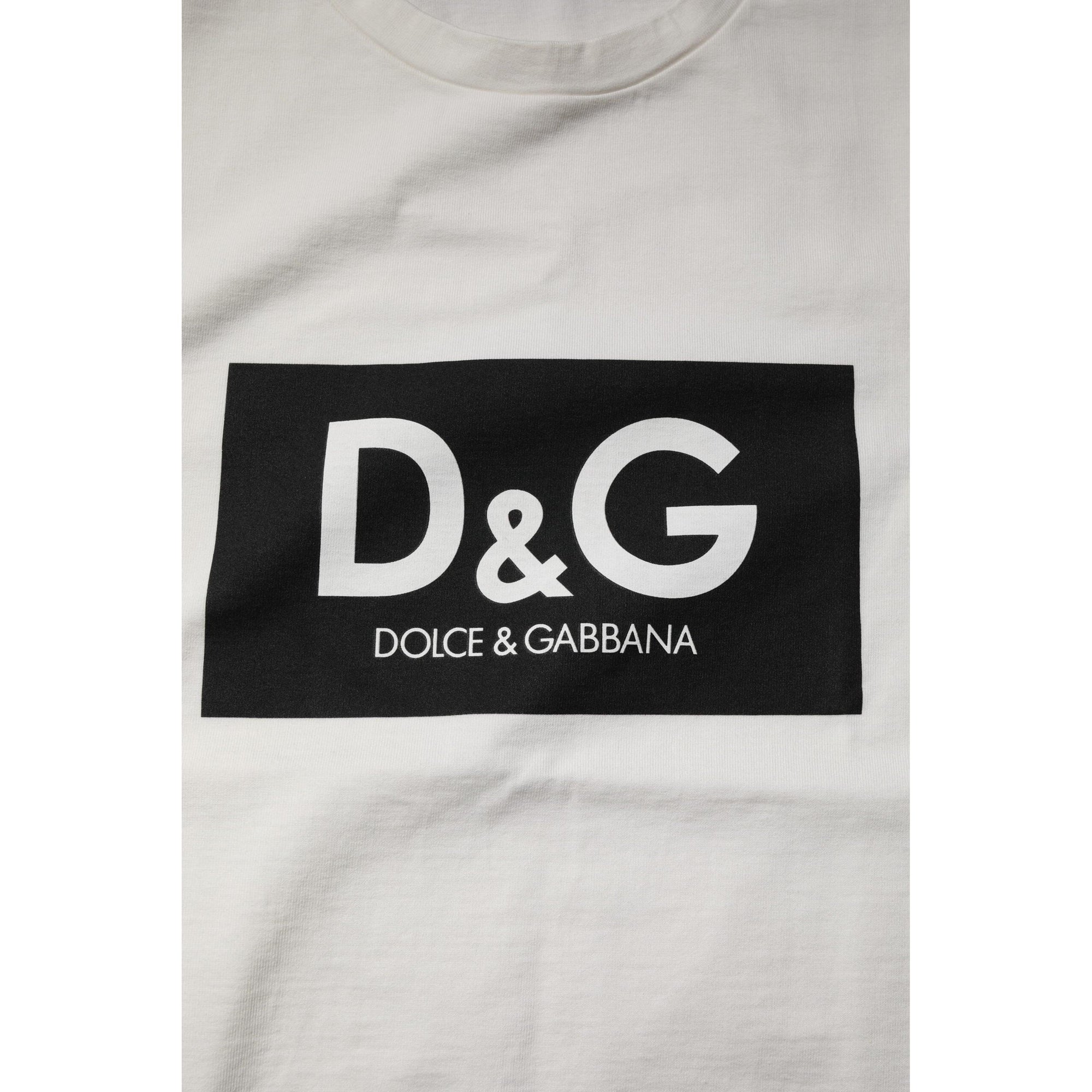 Dolce & Gabbana White Cotton DG Logo Print Round Neck T-shirt