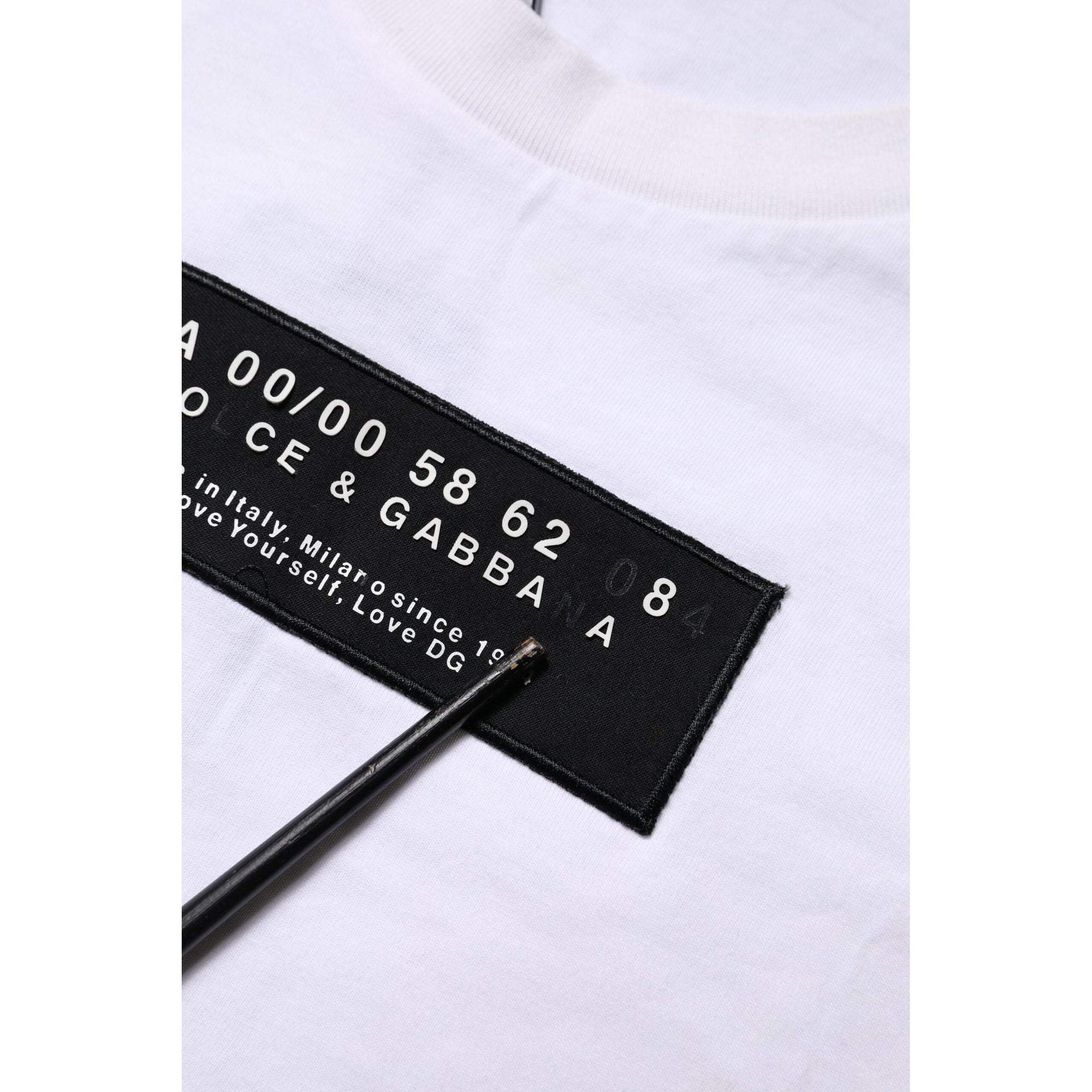 Dolce & Gabbana White Cotton Logo Patch Crew Neck T-shirt