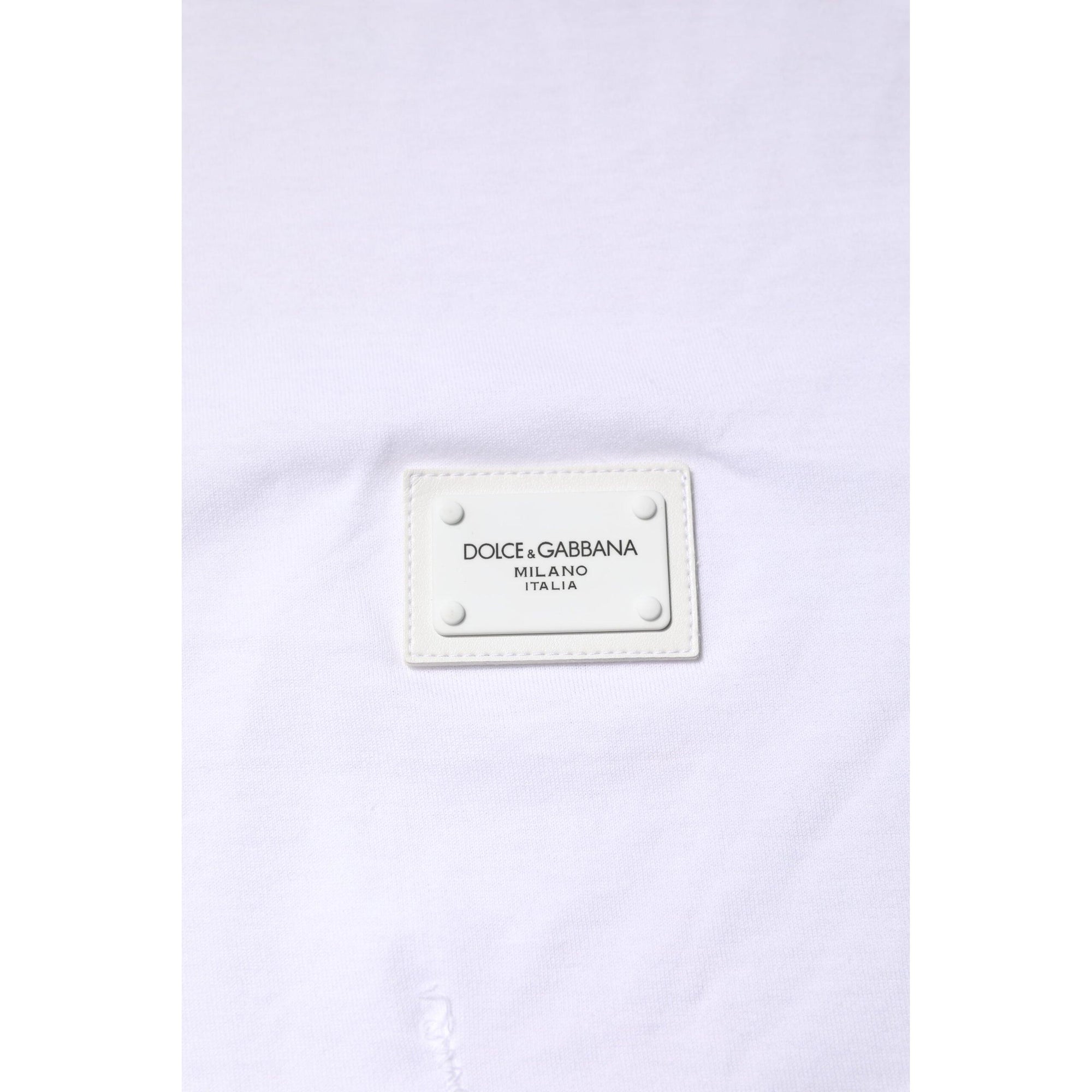 Dolce & Gabbana White Cotton Logo Plaque Round Neck T-shirt