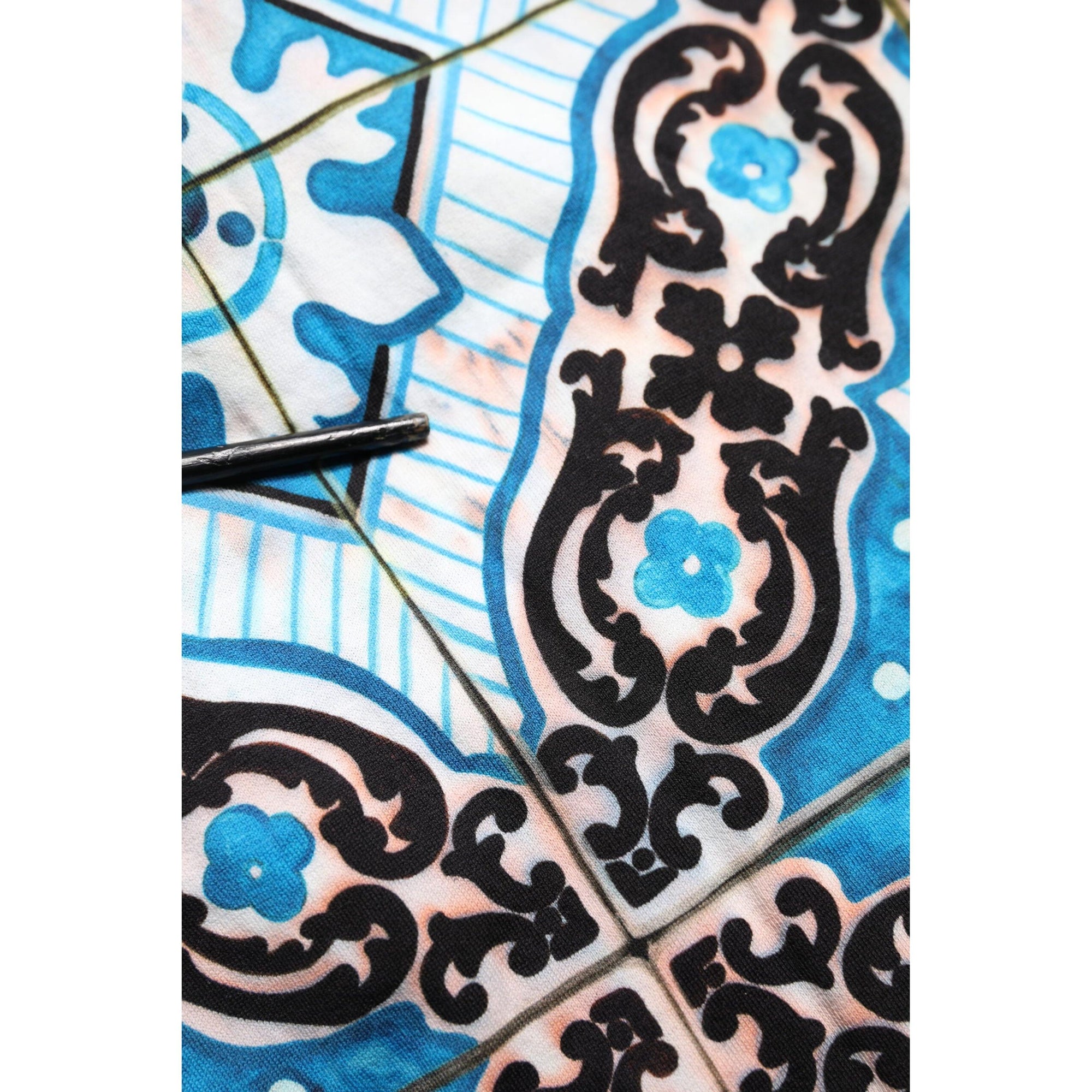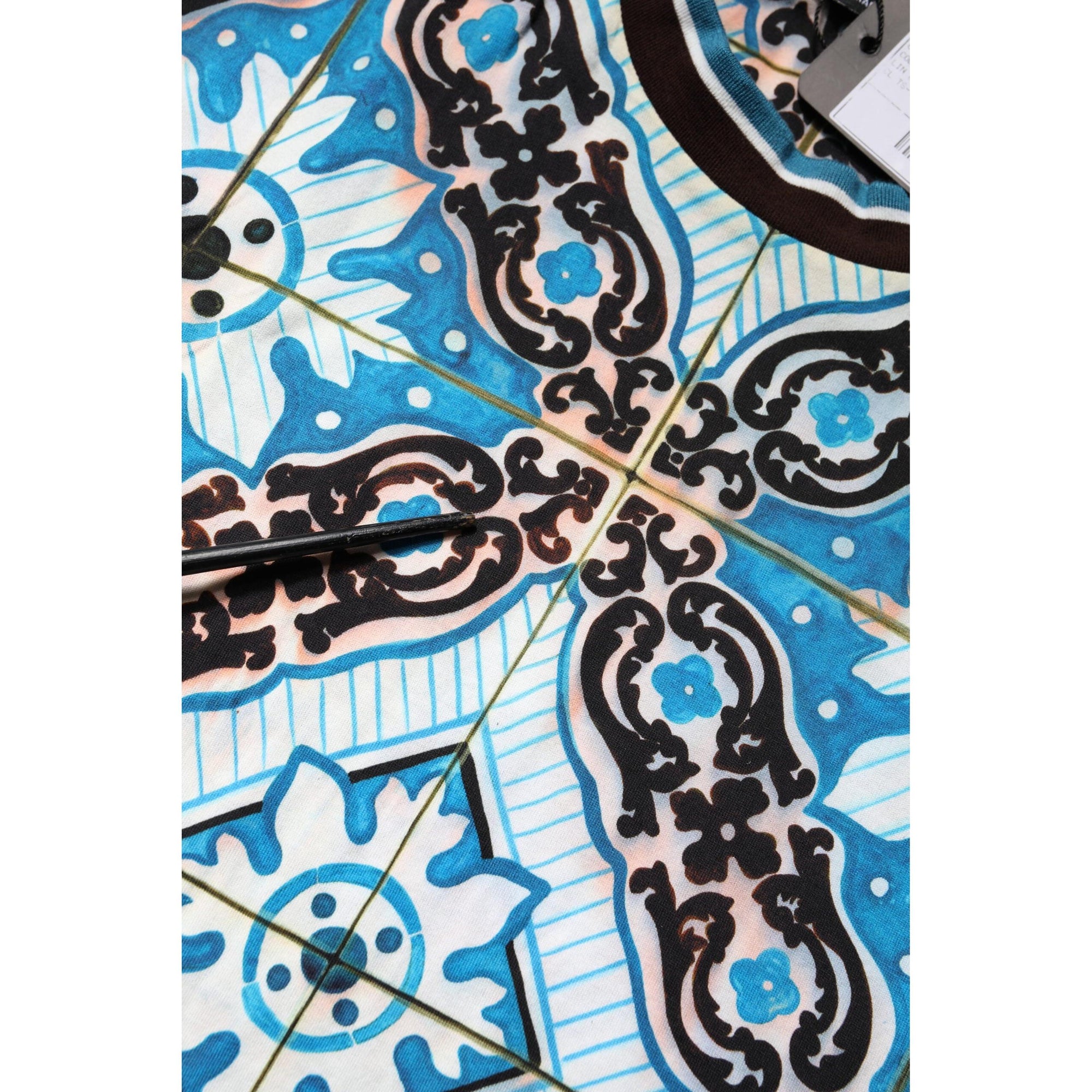 Dolce & Gabbana Blue Cotton Majolica Print Round Neck T-shirt