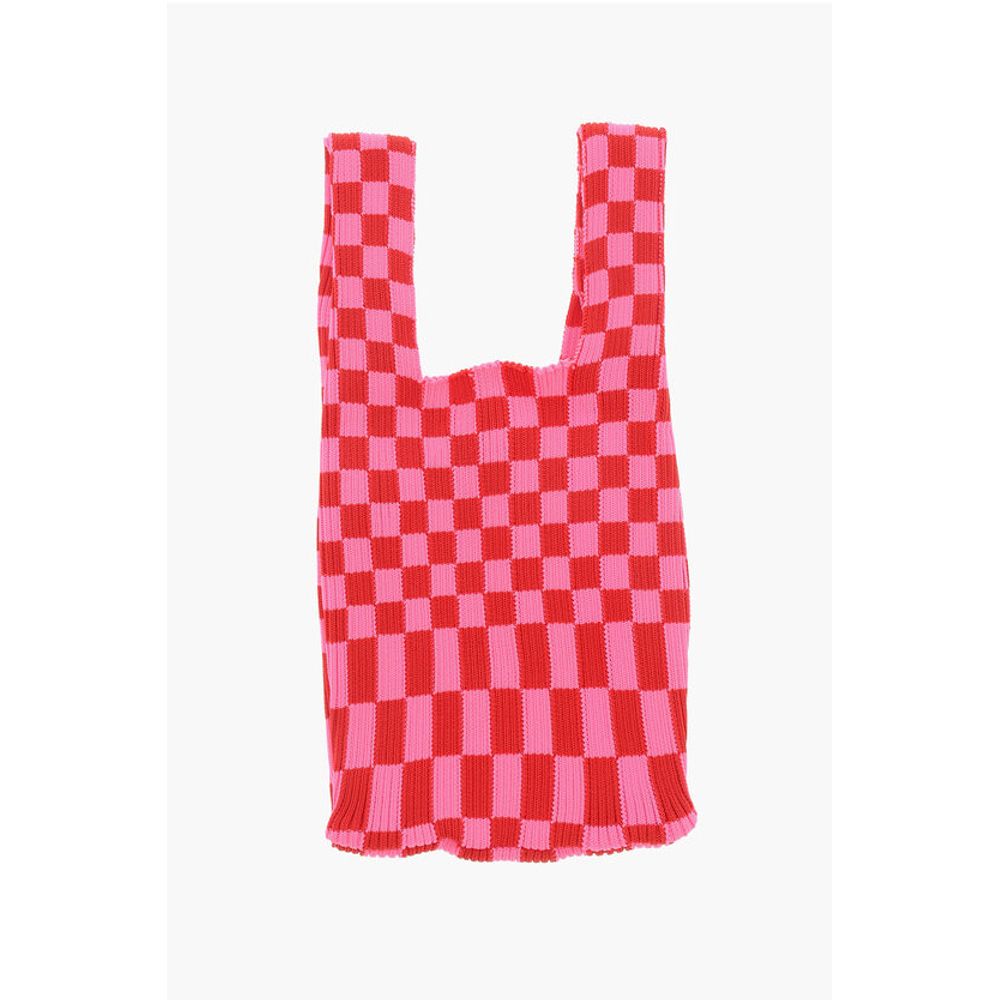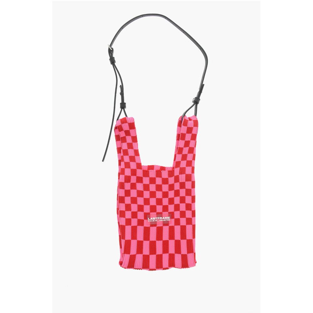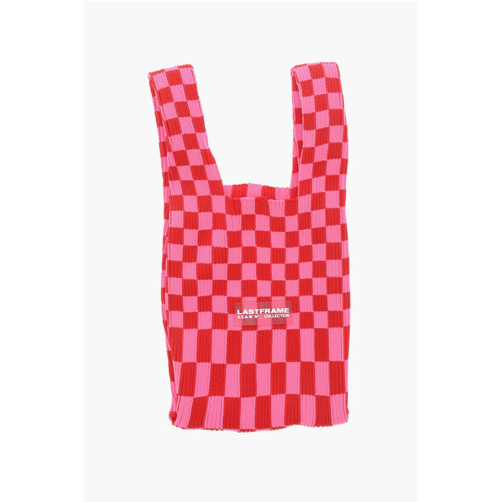 Last Frame Knitted Checked Mini Tote Bag with Faux Leather Shoulder Str