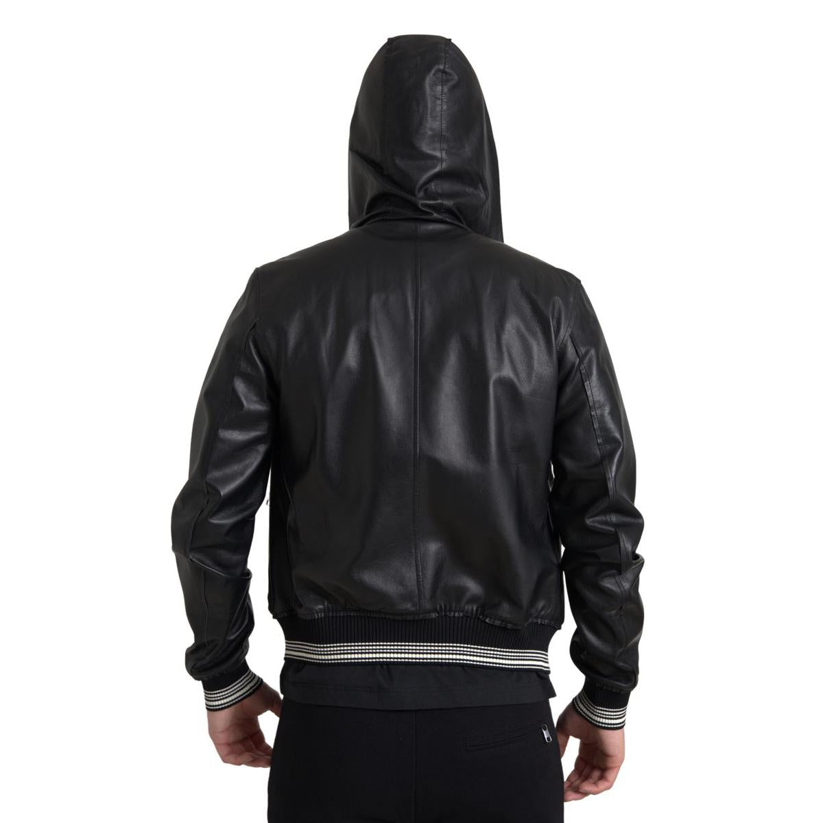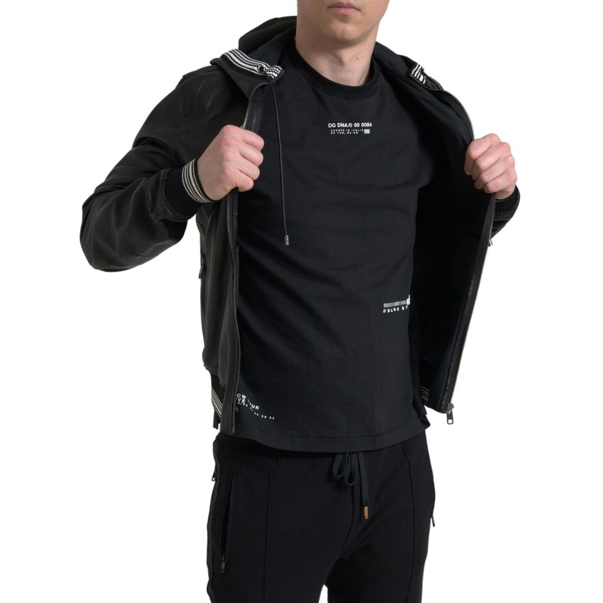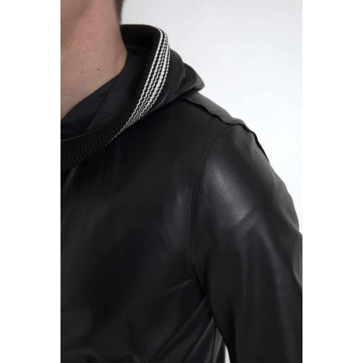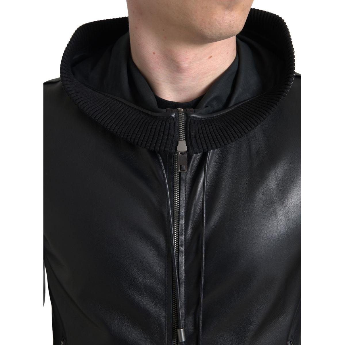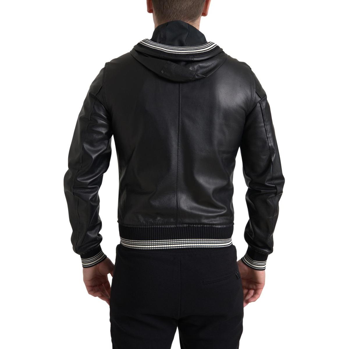 Dolce & Gabbana Elegant Black Leather Bomber Jacket