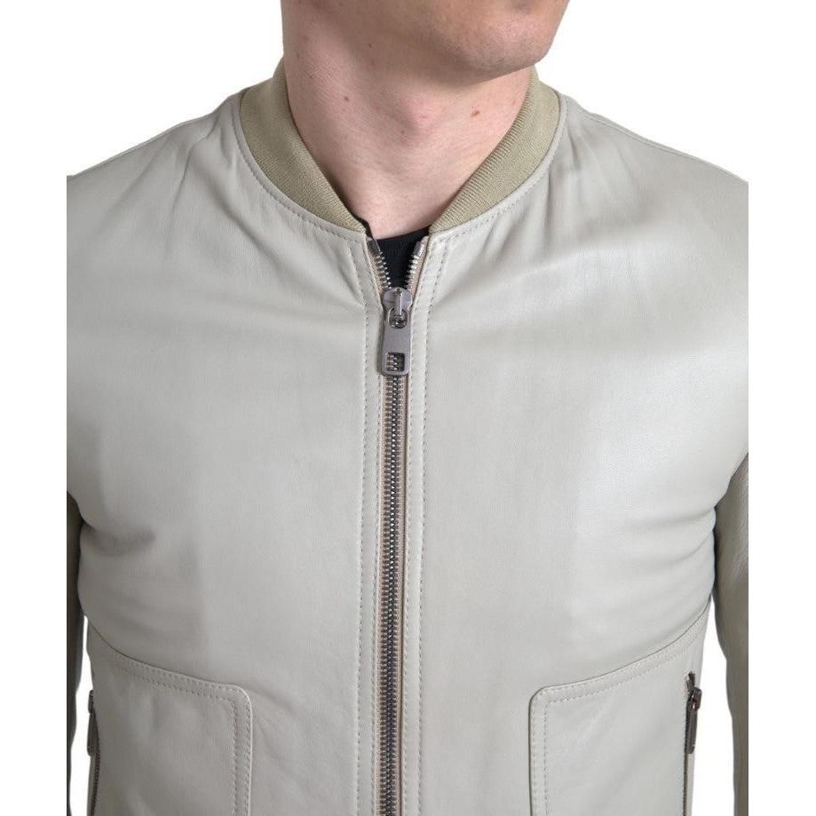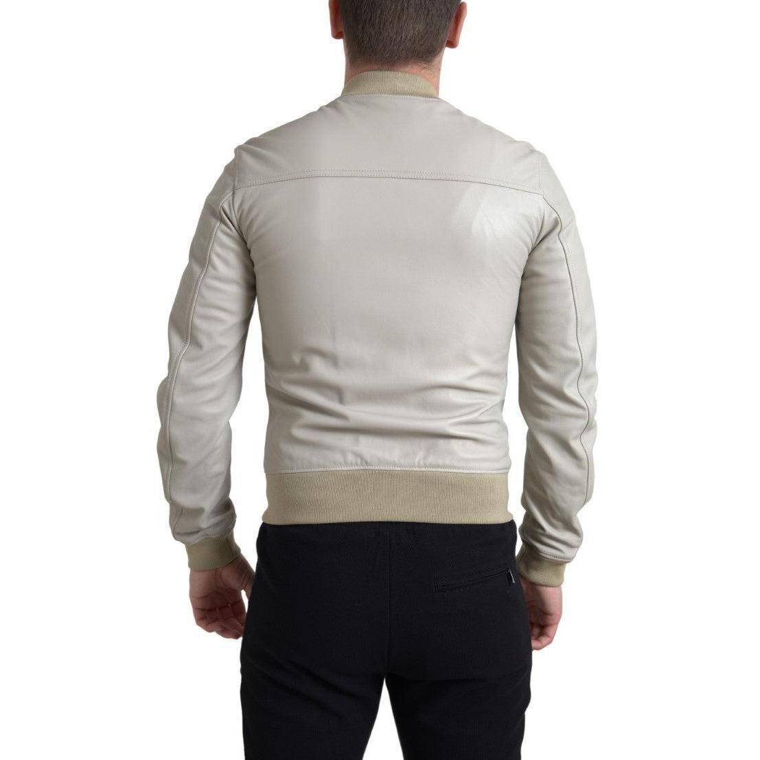Dolce & Gabbana Cream Leather Bomber Jacket