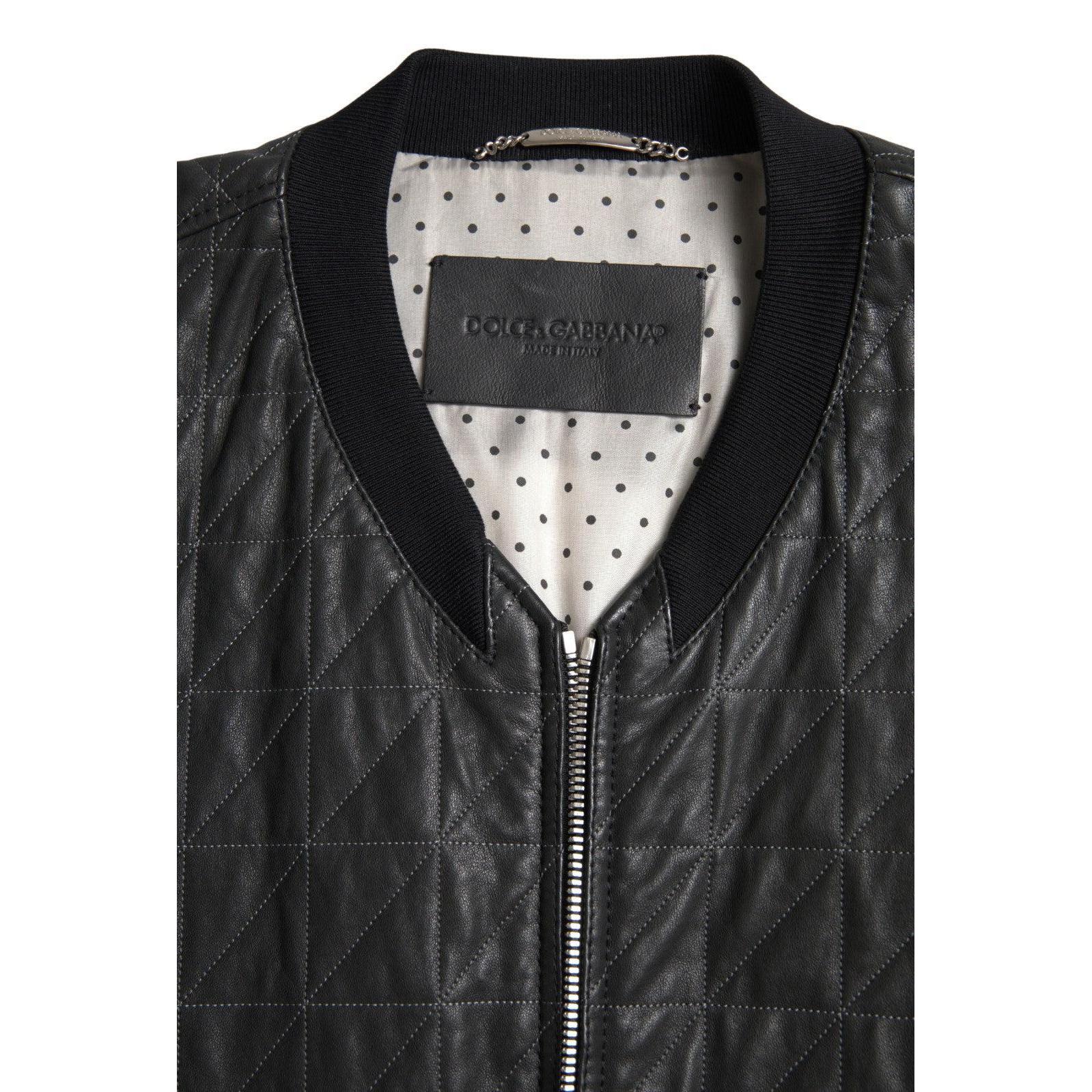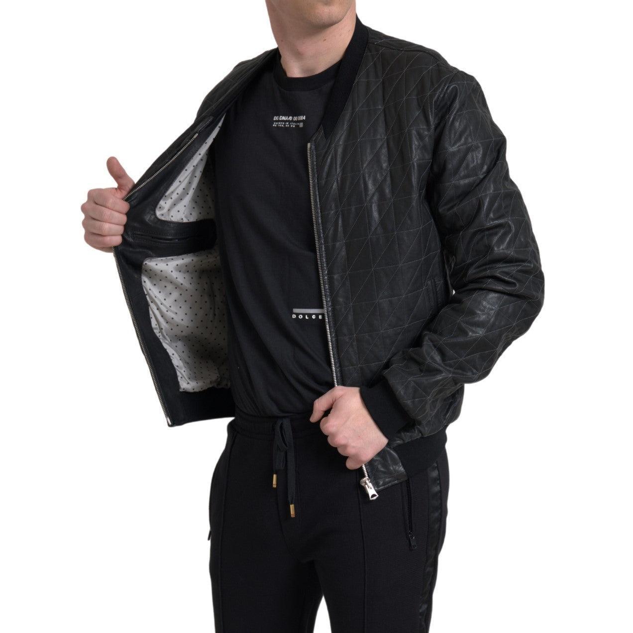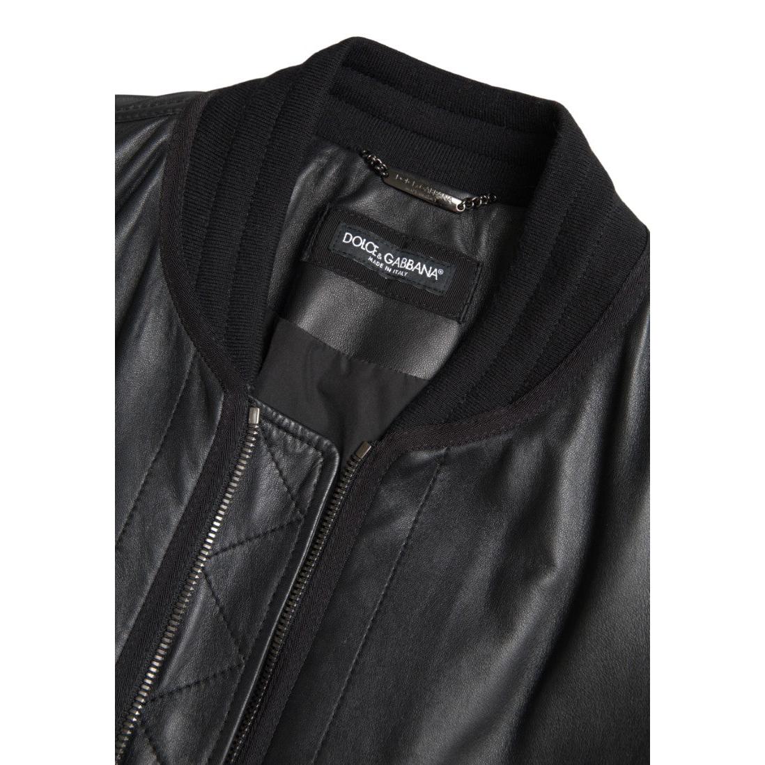 Dolce & Gabbana Elegant Black Leather Bomber Jacket