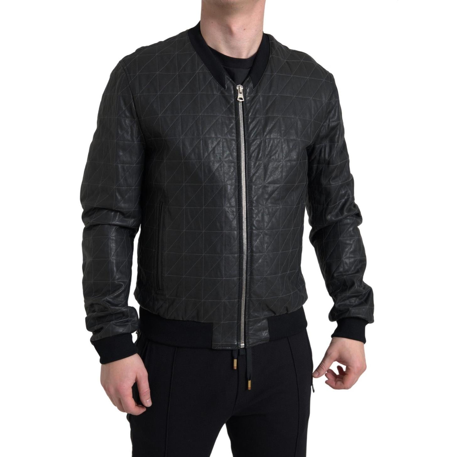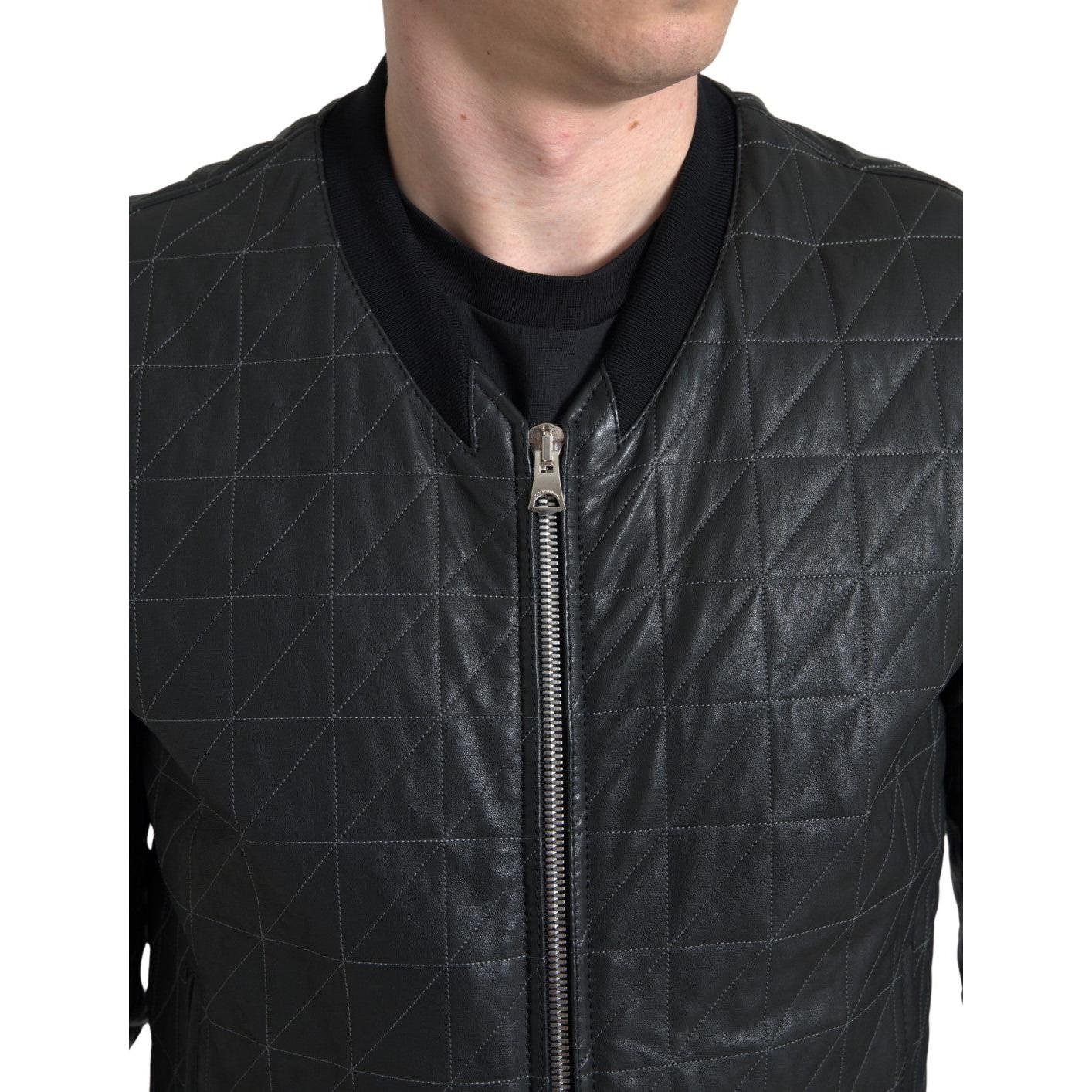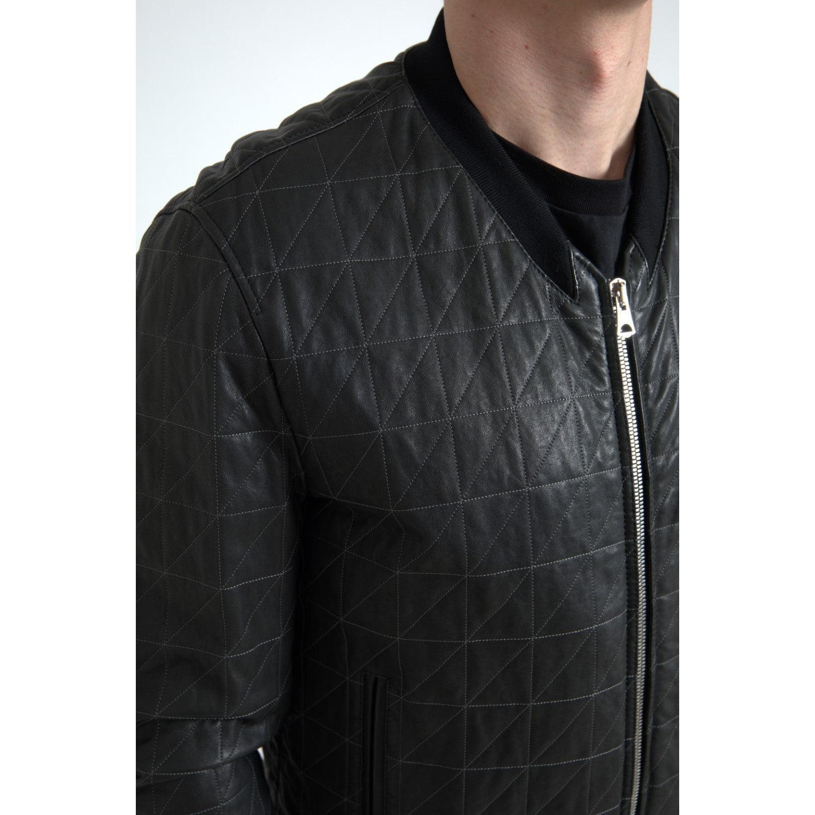 Dolce & Gabbana Elegant Black Leather Bomber Jacket