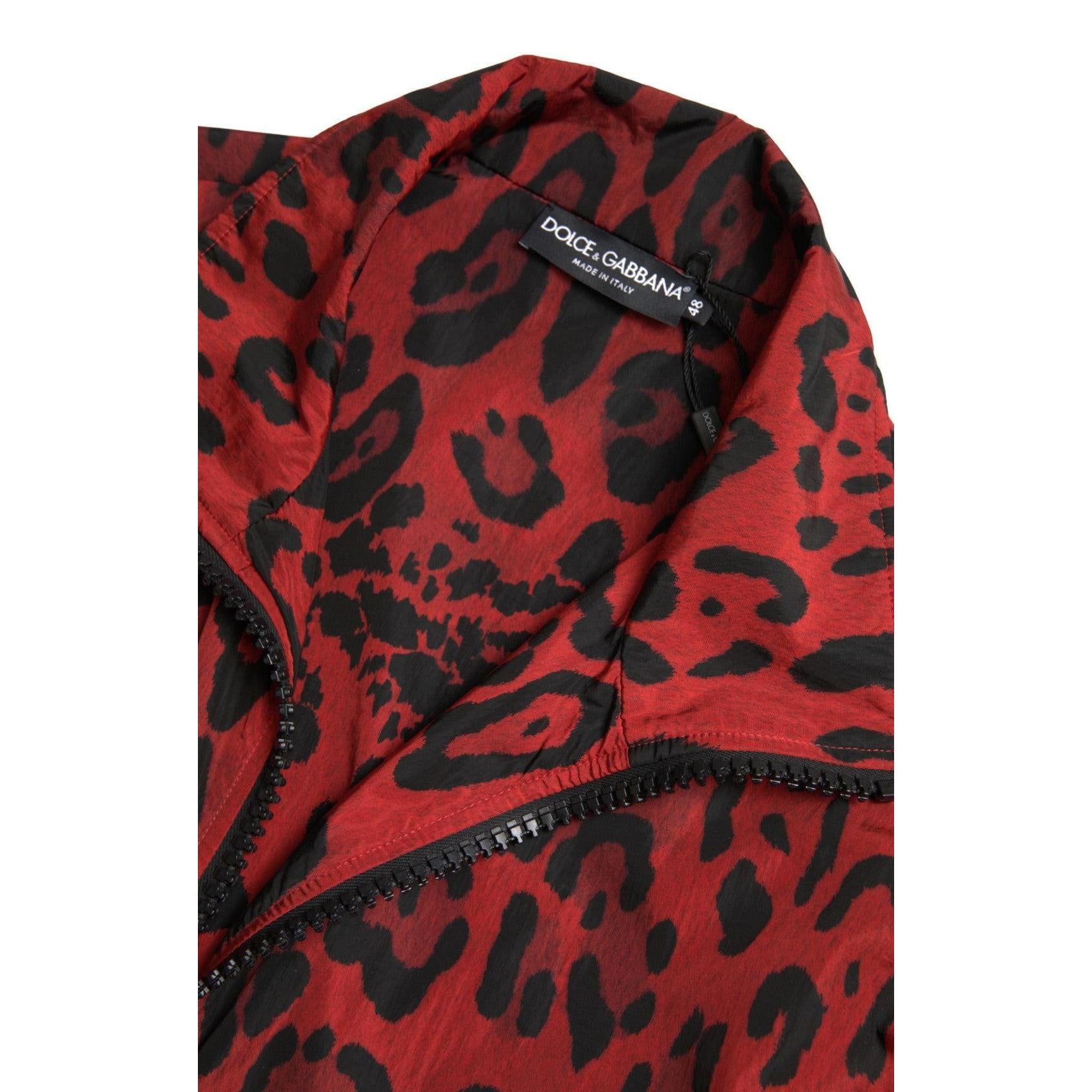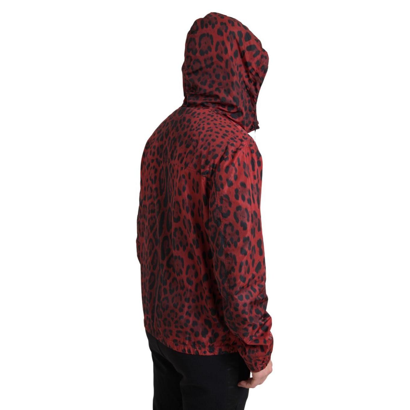 Dolce & Gabbana Red Leopard Hooded Bomber Jacket