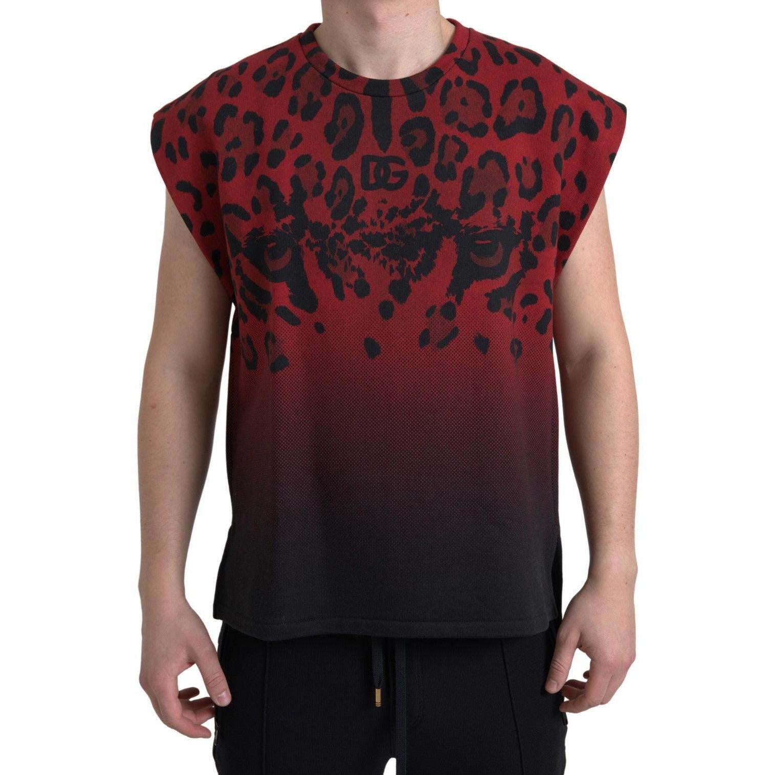 Dolce & Gabbana Red Leopard Print Cotton Tank Top
