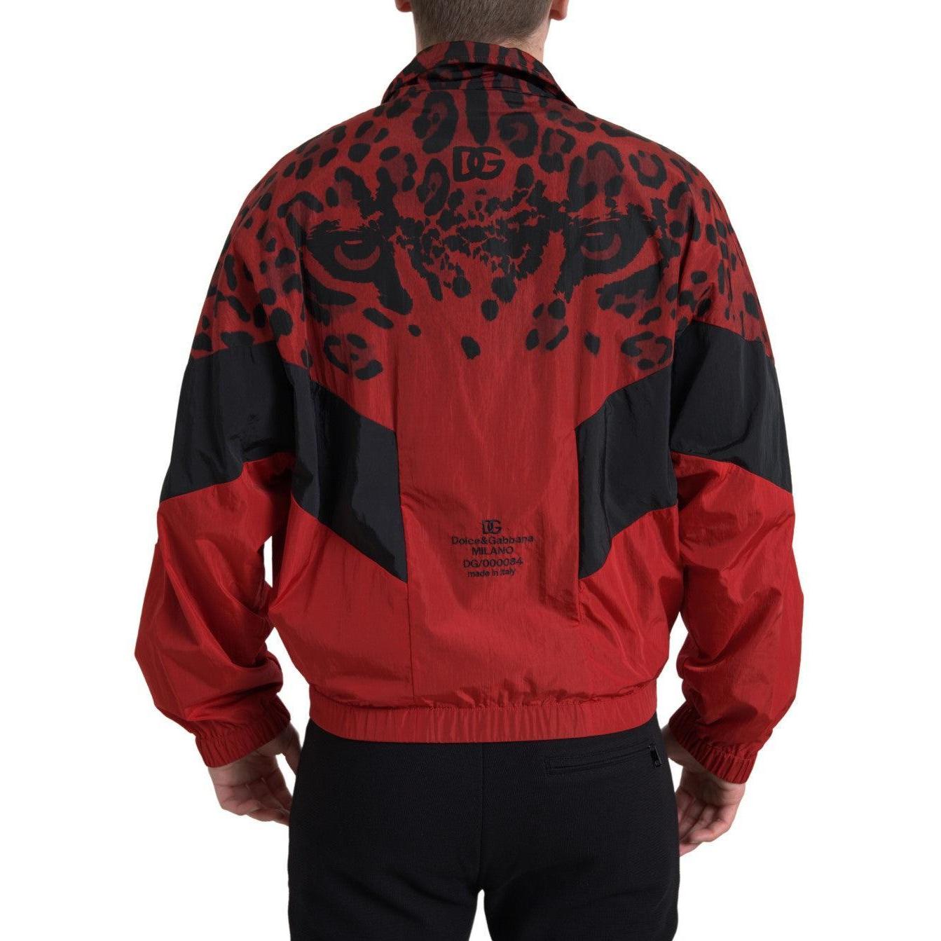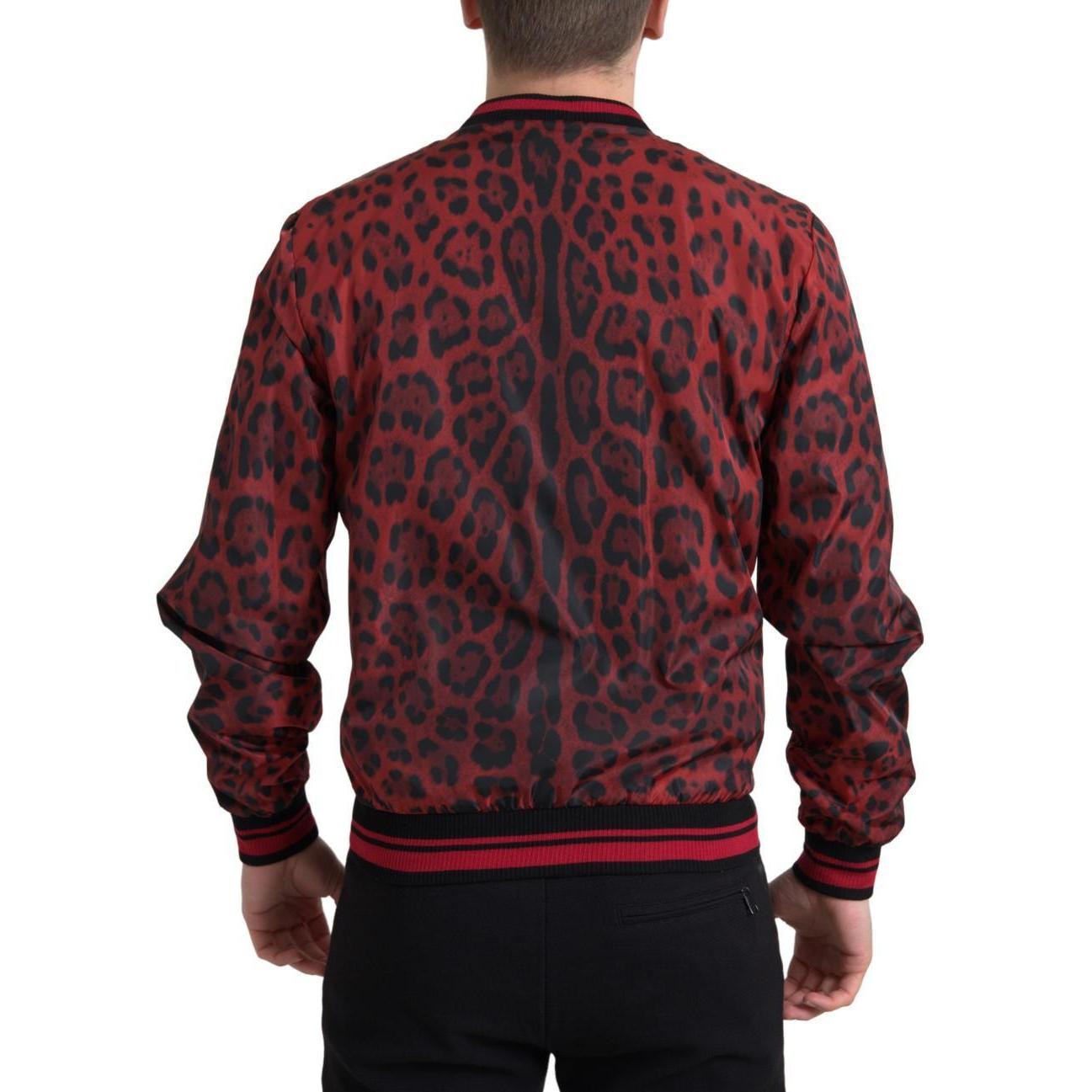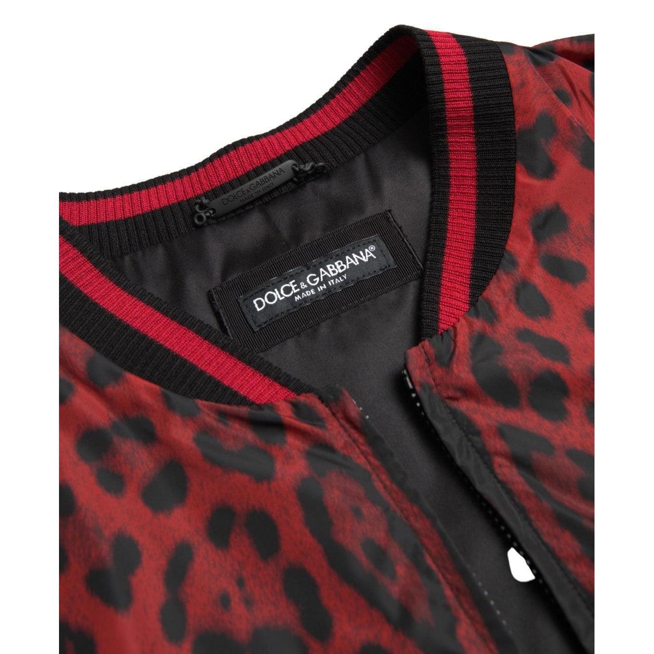 Dolce & Gabbana Red Leopard Print Bomber Jacket
