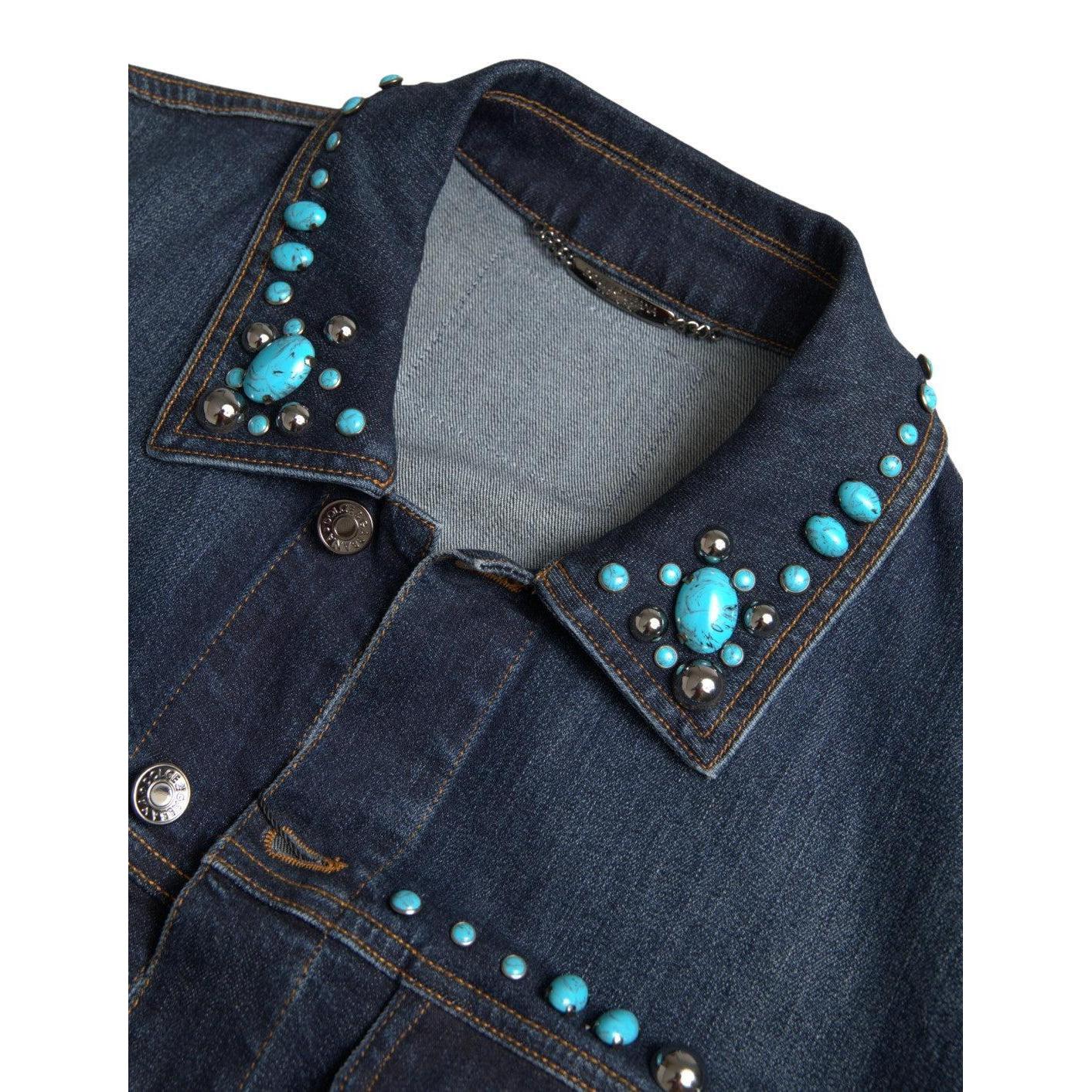 Dolce & Gabbana Embellished Turquoise Denim Jacket