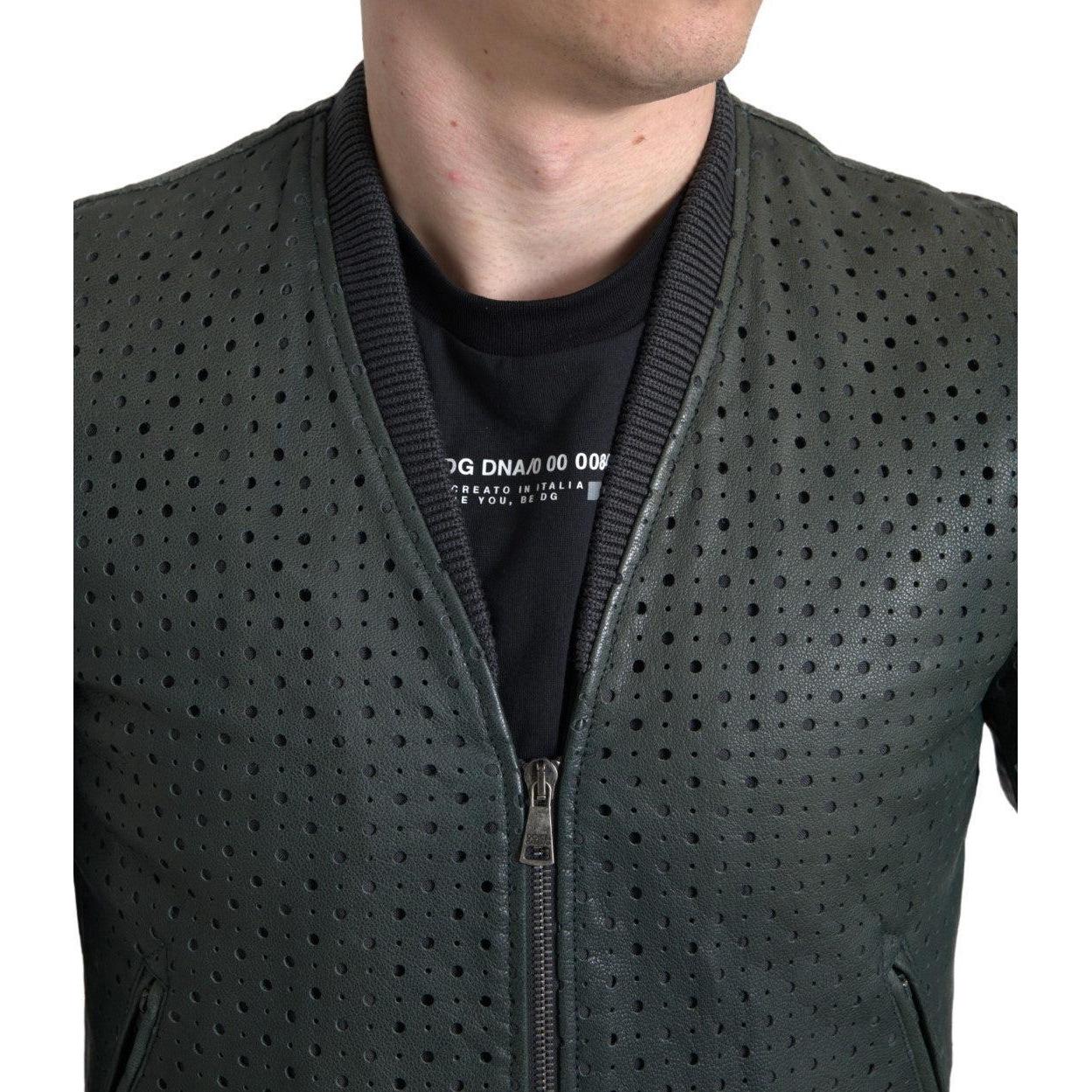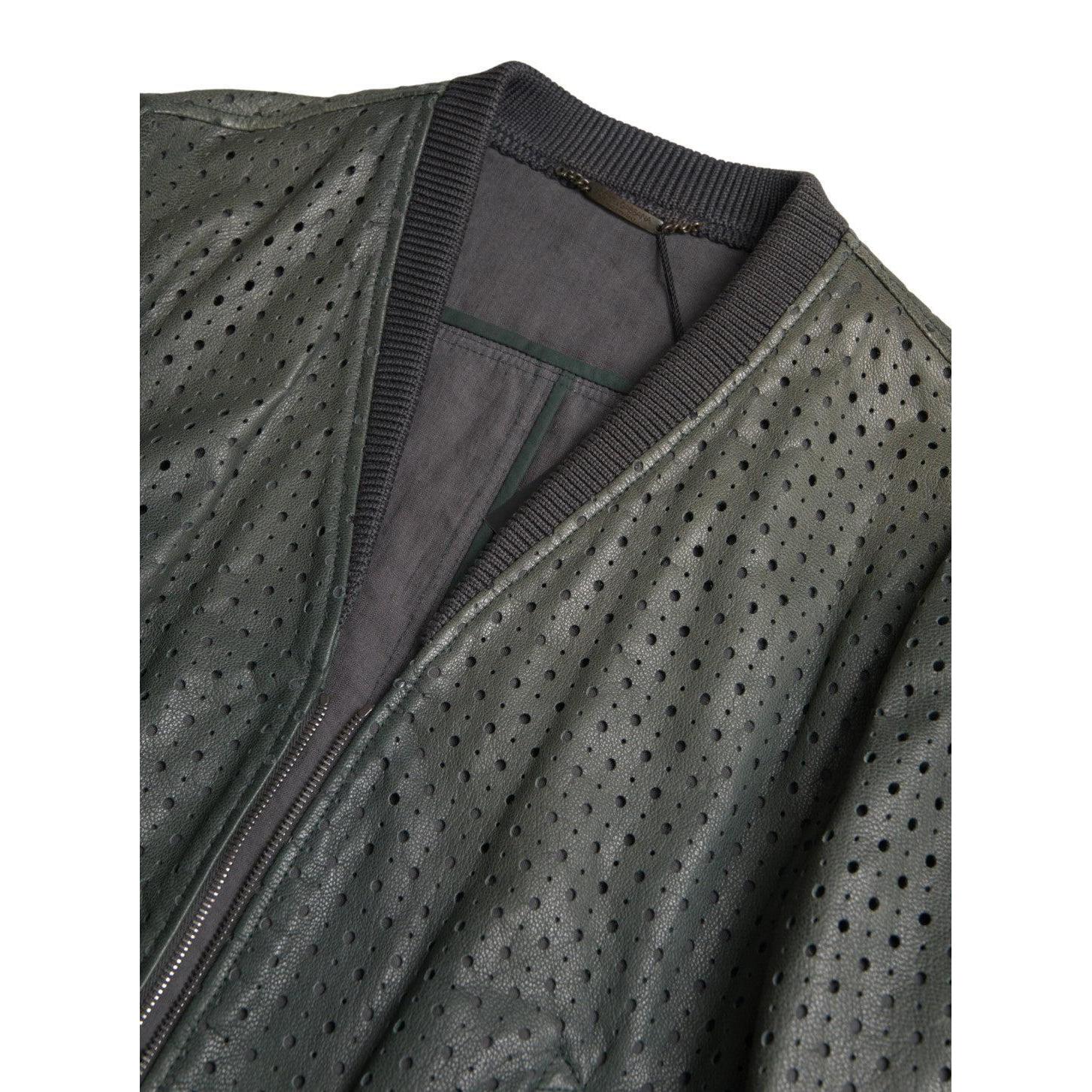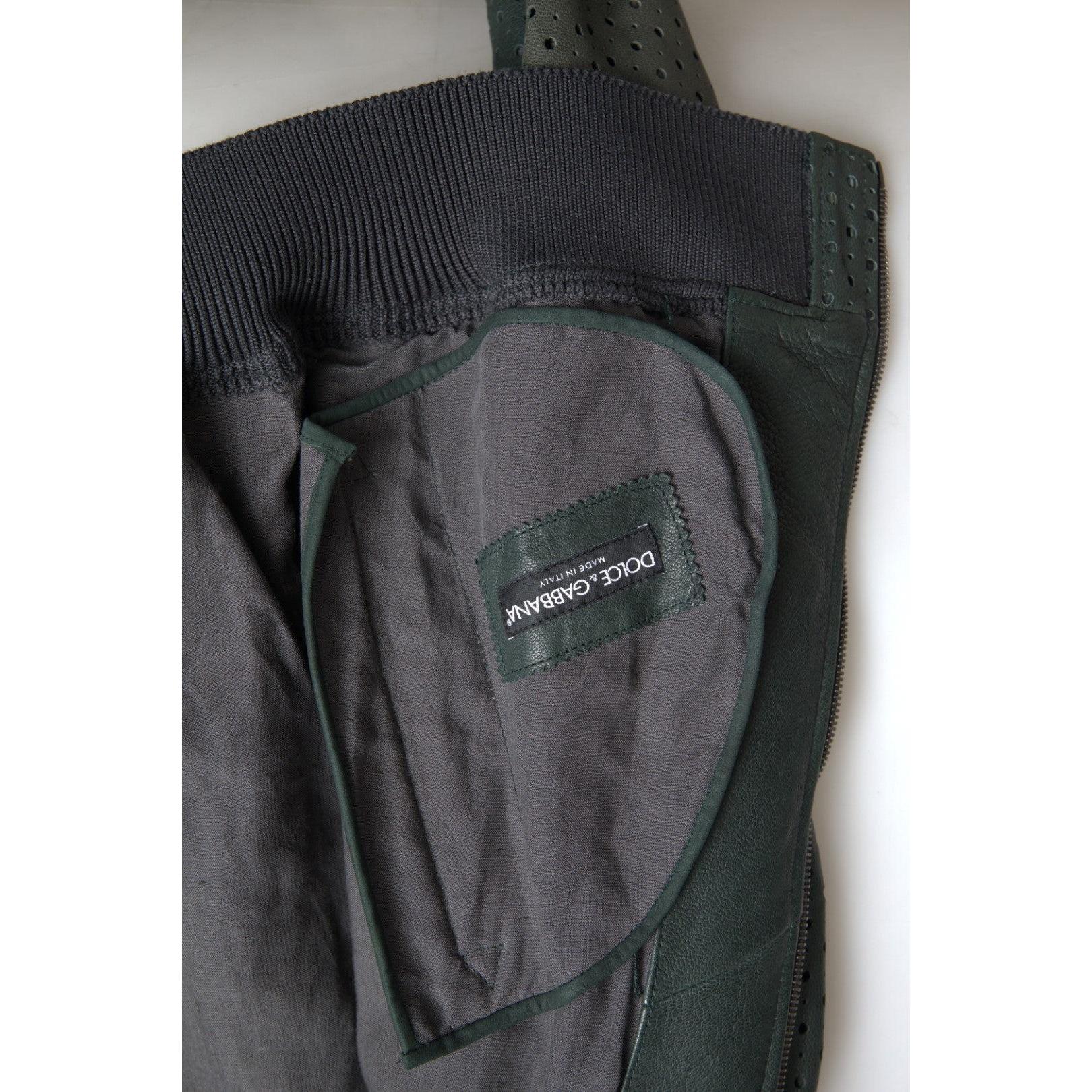 Dolce & Gabbana Emerald Green Goatskin Bomber Jacket