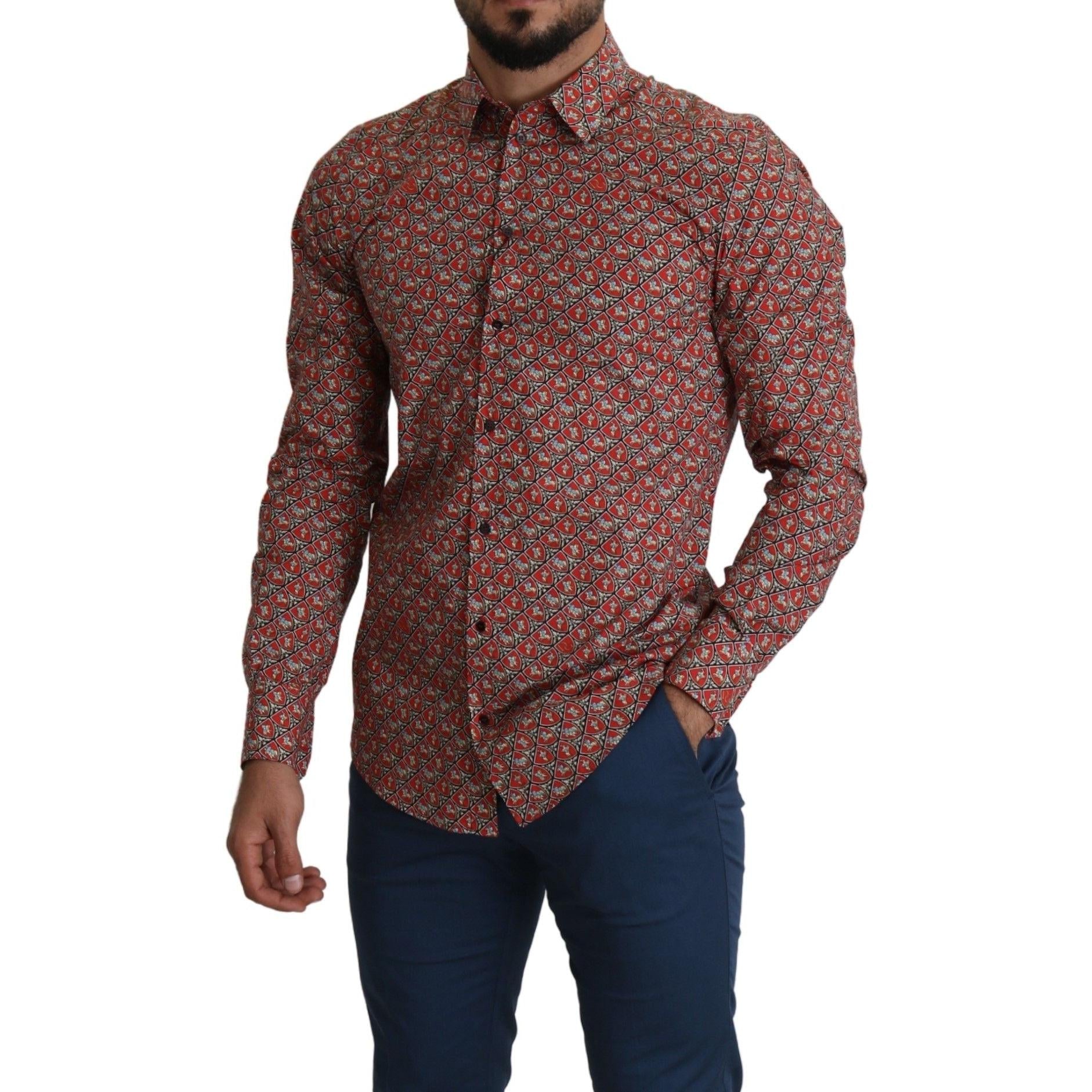 Dolce & Gabbana Elegant Red Martini Fit Cotton Shirt