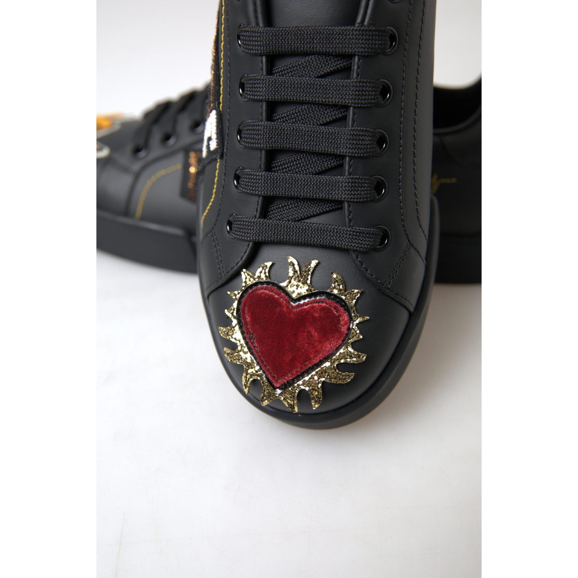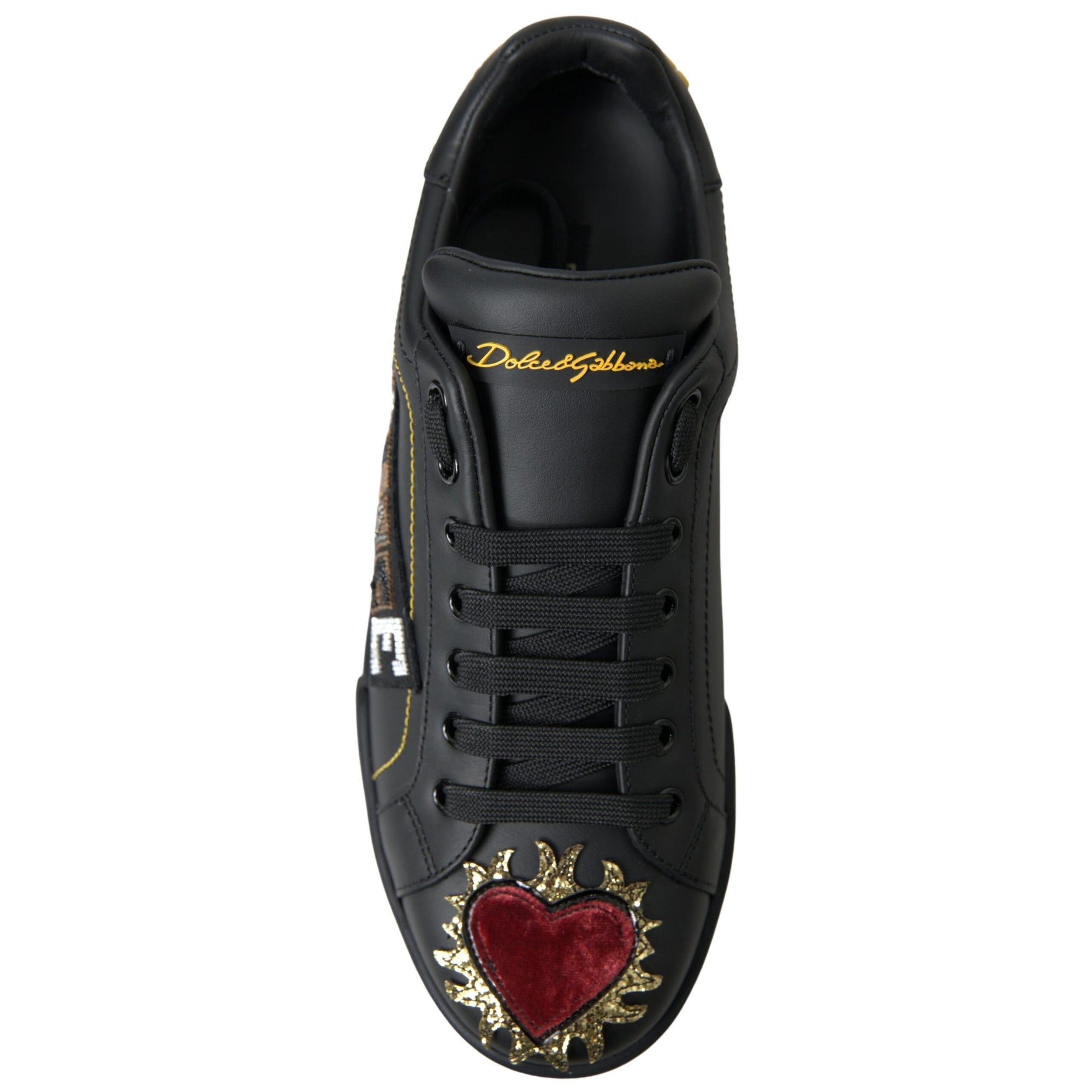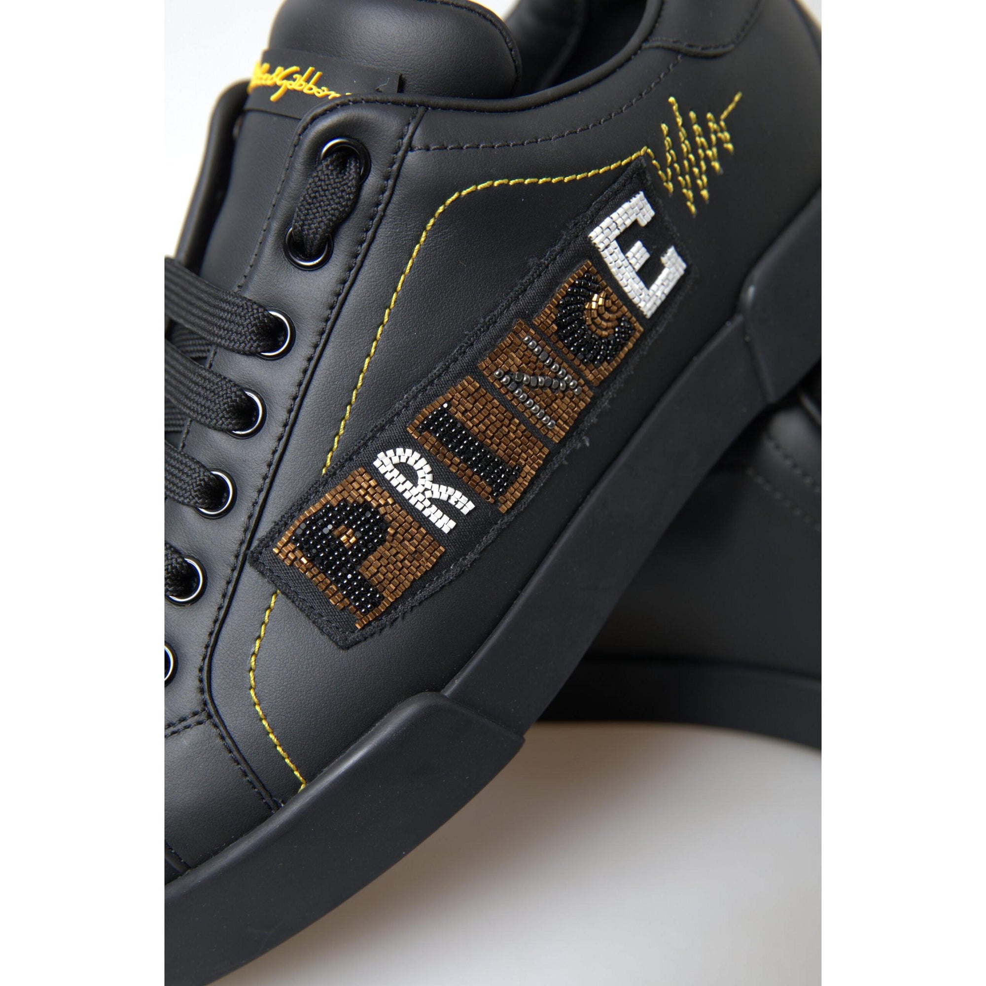 Dolce & Gabbana Elegant Portofino Leather Sneakers - Black Multicolor