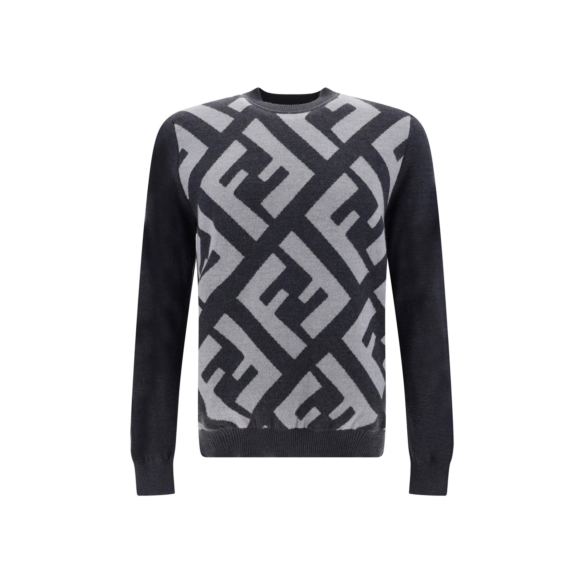 Fendi Chic Grey Wool Iconic Logo Sweater