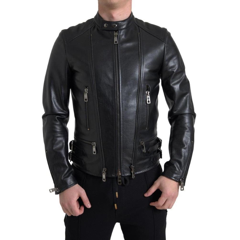 Dolce & Gabbana Sleek Black Leather Biker Jacket