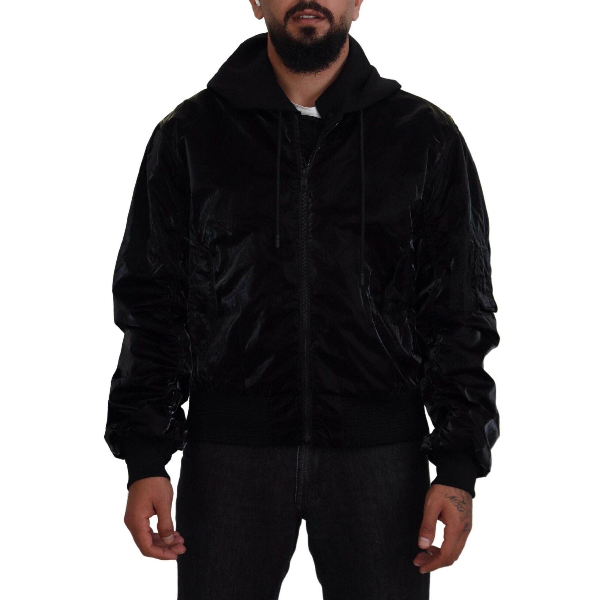 Dolce & Gabbana Elegant Black Bomber Hooded Jacket