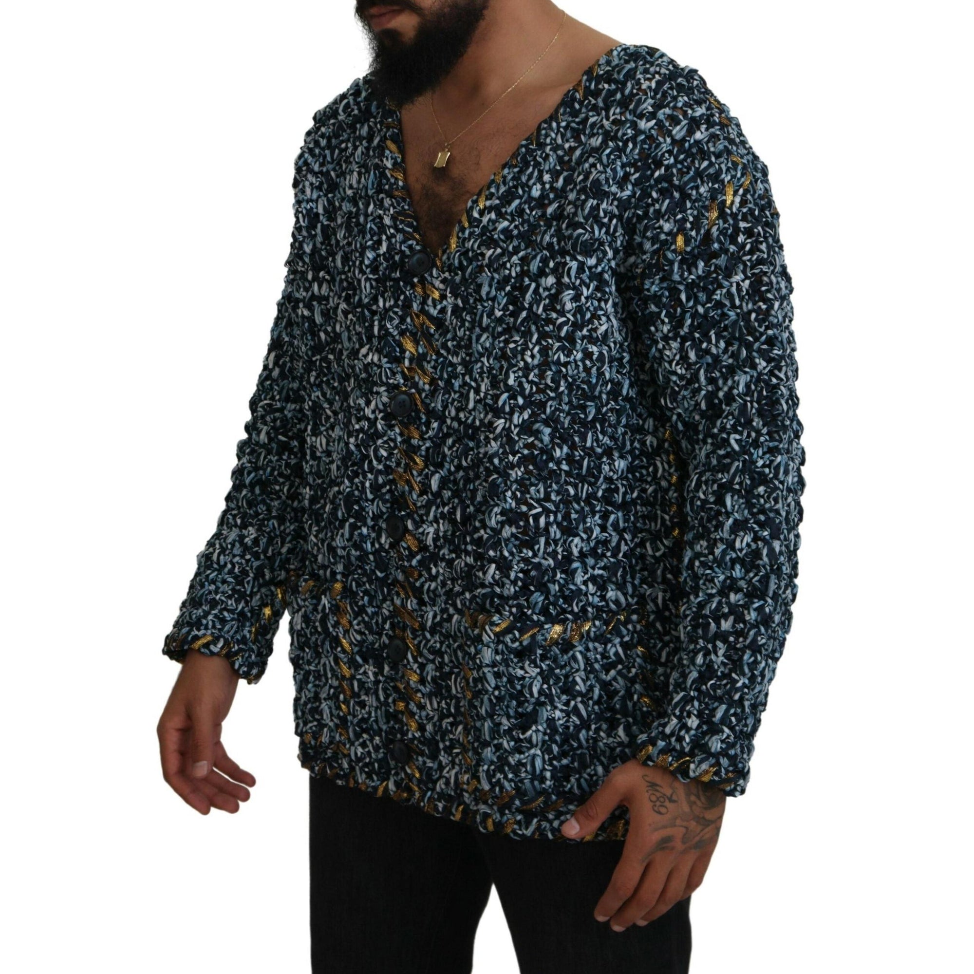 Dolce & Gabbana Elegant Blue V-Neck Cardigan Sweater