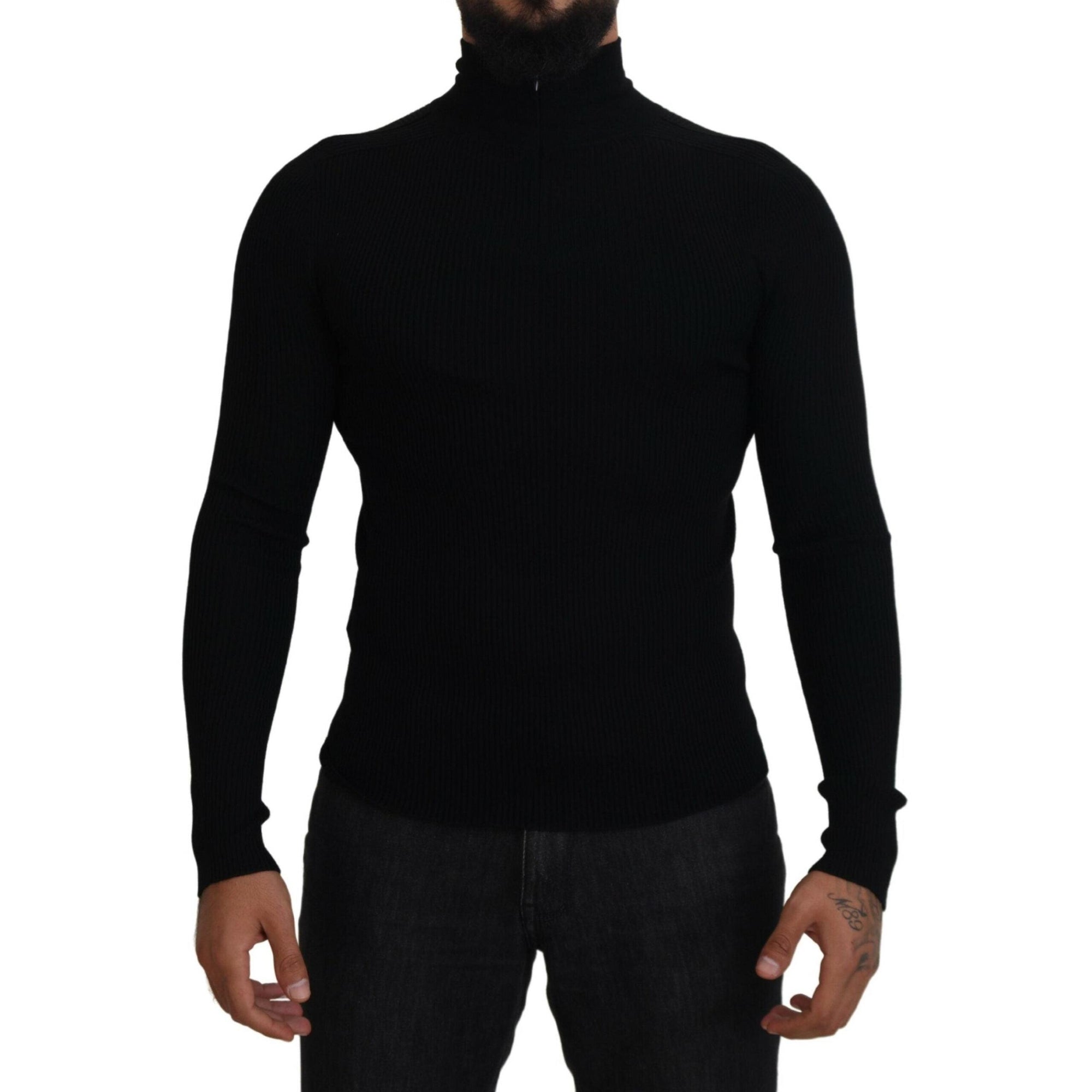 Dolce & Gabbana Elegant Black Wool Half Zip Turtleneck Sweater