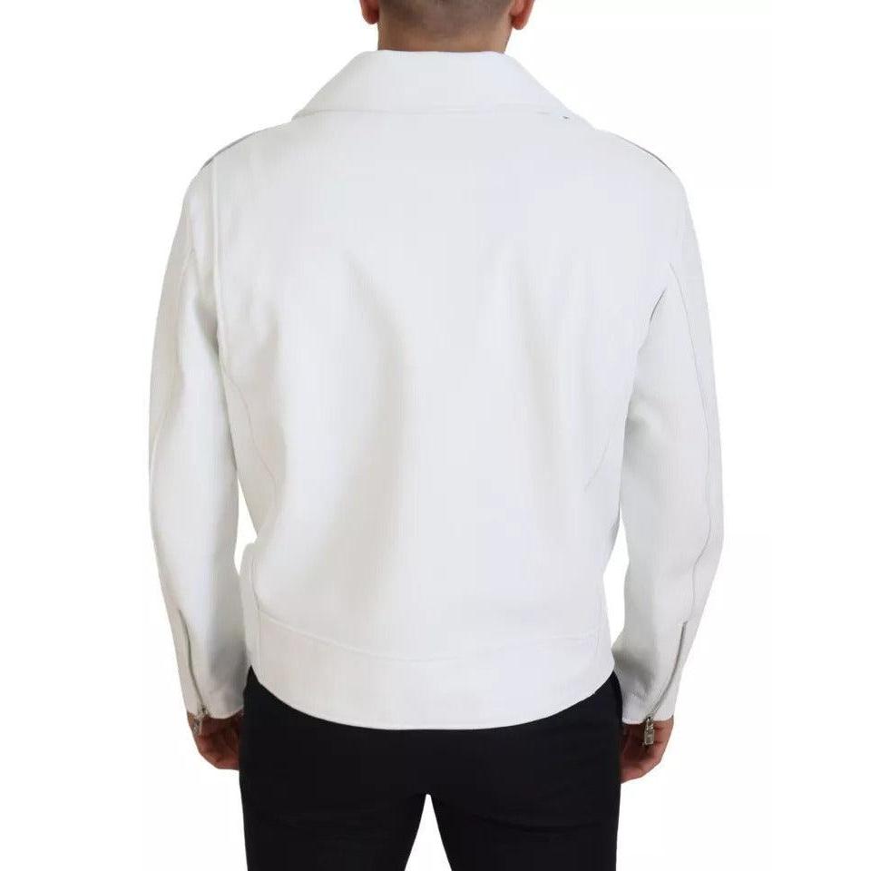 Dolce & Gabbana White Leather Biker Coat Zipper Jacket