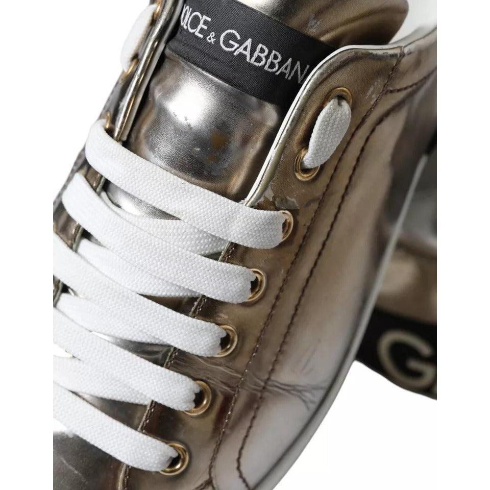 Dolce & Gabbana Bronze Leather Logo Sneaker Portofino Shoes