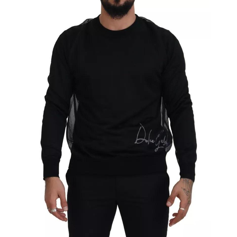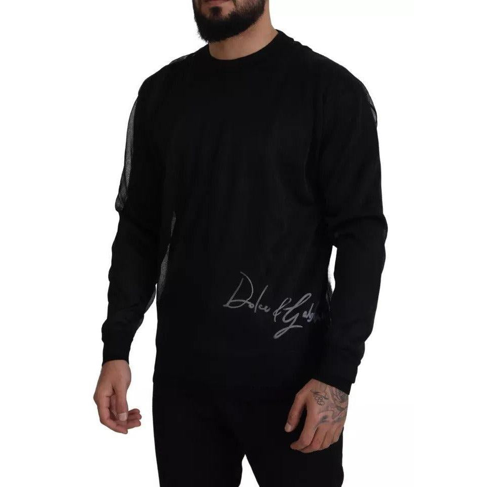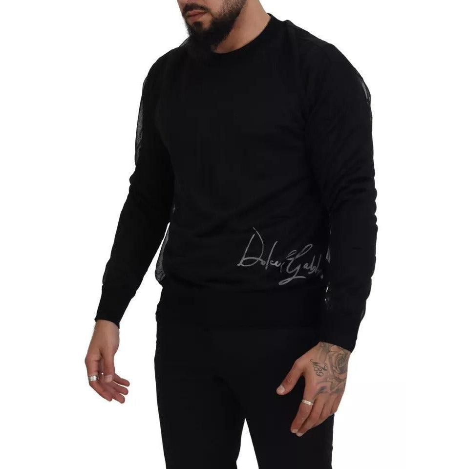 Dolce & Gabbana Black Polyester Logo Men Pullover Sweater
