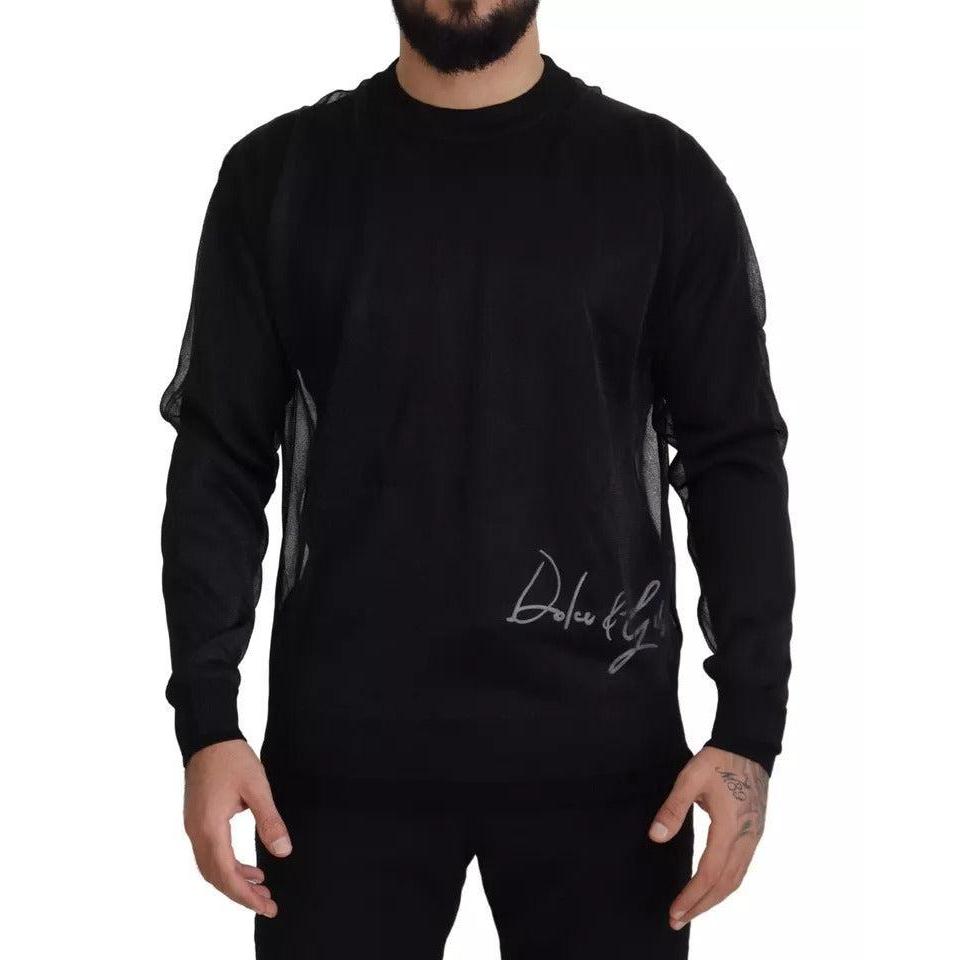 Dolce & Gabbana Black Polyester Crewneck Pullover Sweater