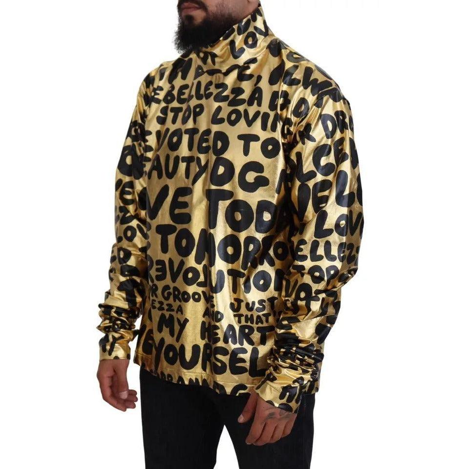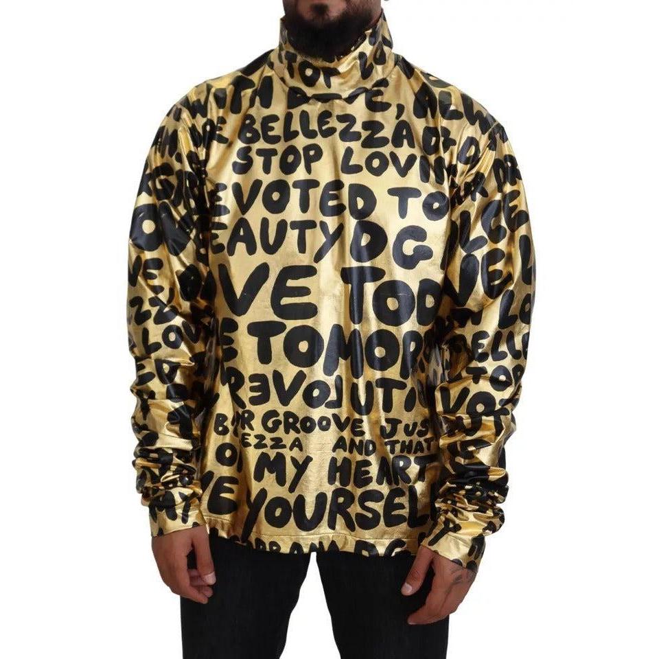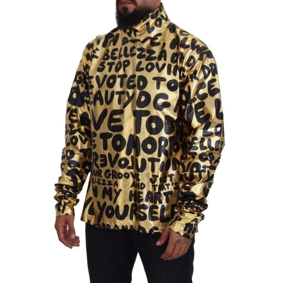 Dolce & Gabbana Gold Logo Print Turtleneck Pullover Sweater