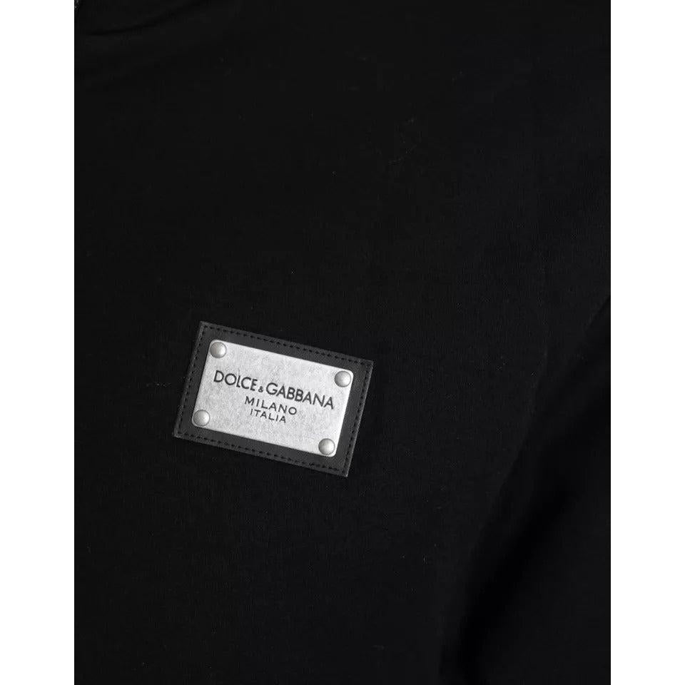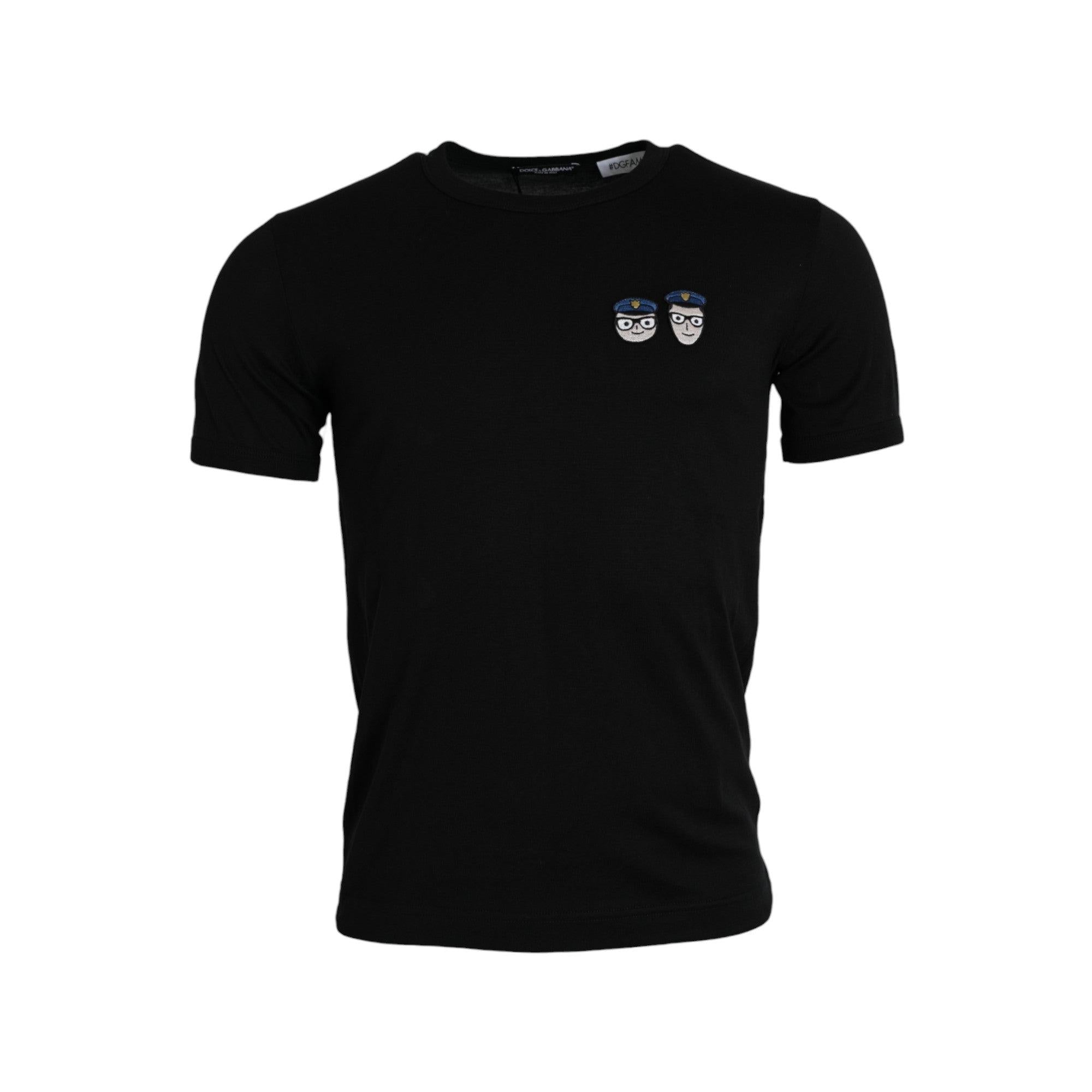 Dolce & Gabbana Black Embellished Cotton Crew Neck T-shirt