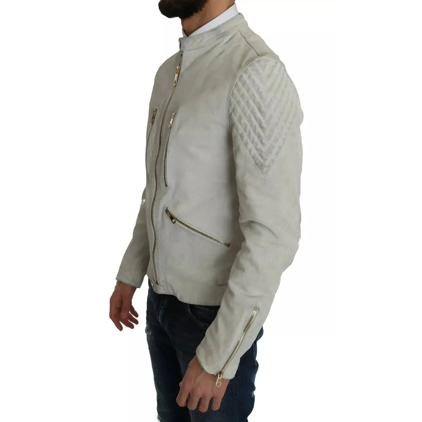 Dolce & Gabbana Leather White Biker Motorcycle Jacket