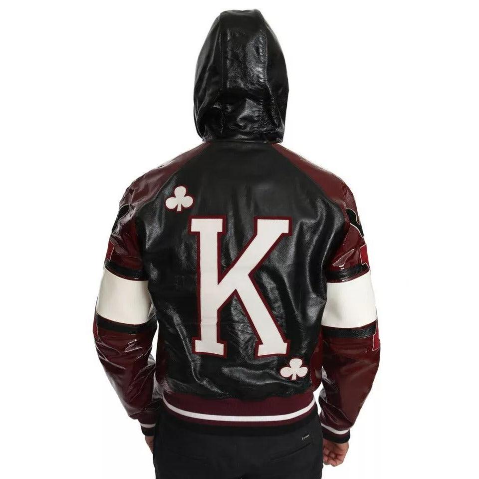 Dolce & Gabbana Black Bordeaux Hooded Leather DG King of Love Jacket