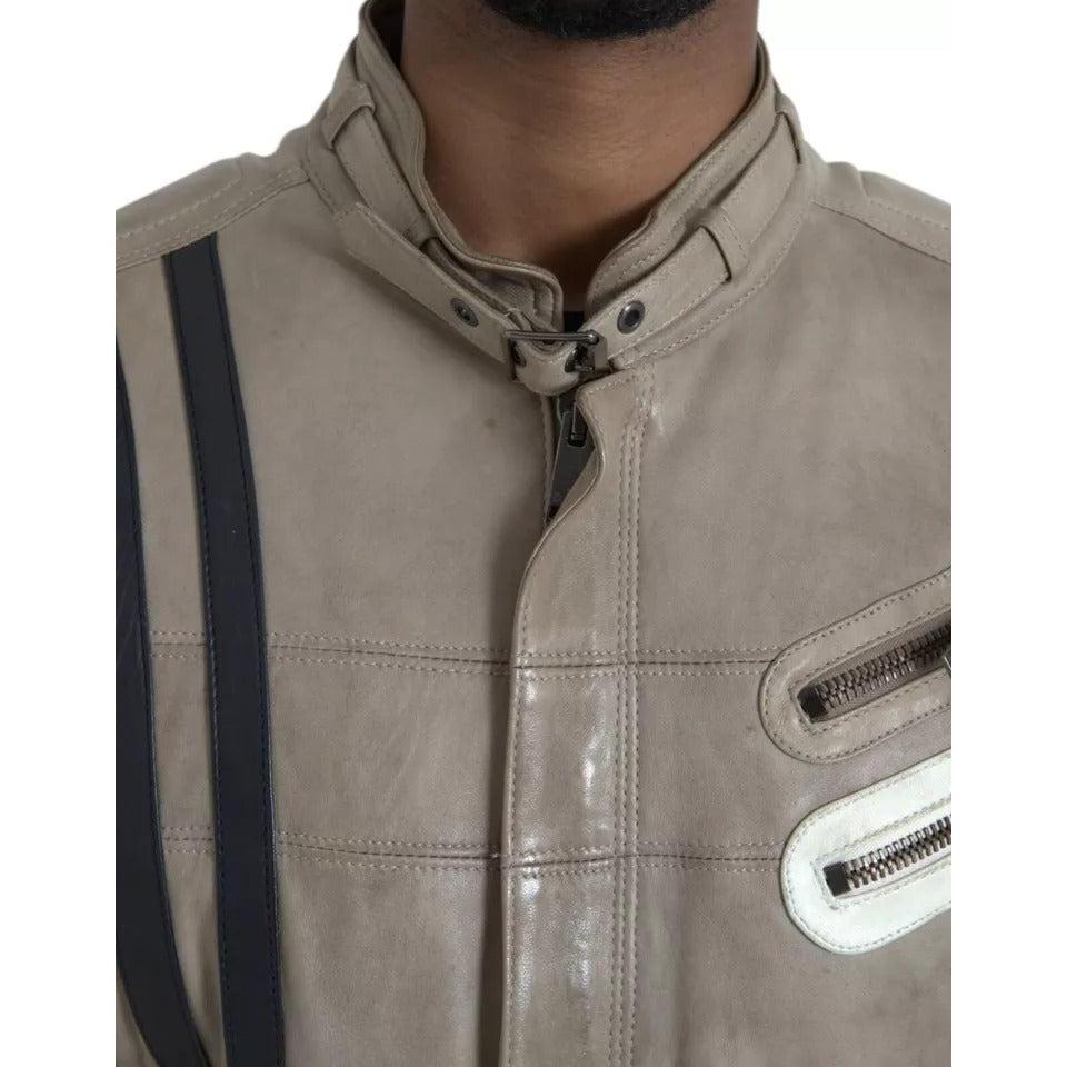 Dolce & Gabbana Beige Leather Full Zip Biker Coat Jacket