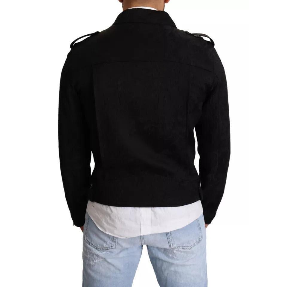 Dolce & Gabbana Black Brocade Full Zip Biker Coat Jacket