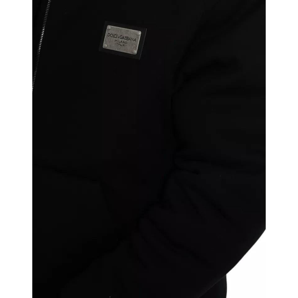 Dolce & Gabbana Black Cotton Hooded Logo Bomber Jacket