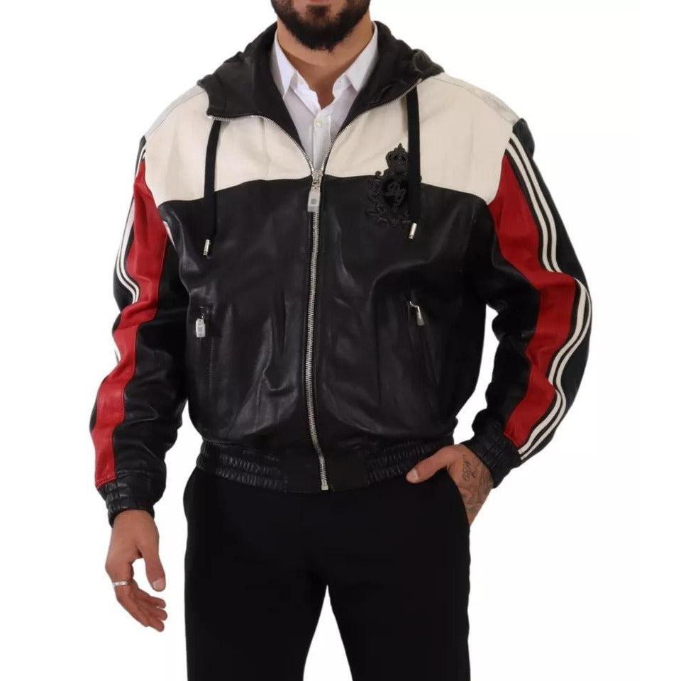 Dolce & Gabbana Black Leather Hooded Blouson Coat Jacket