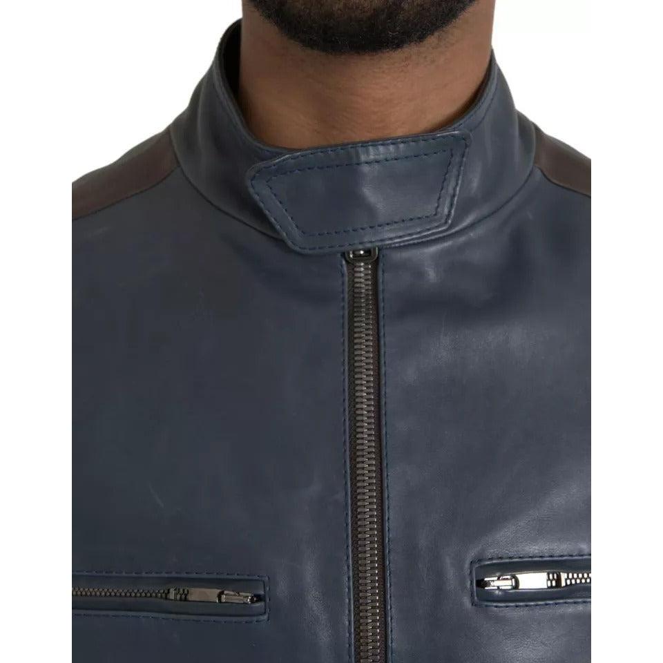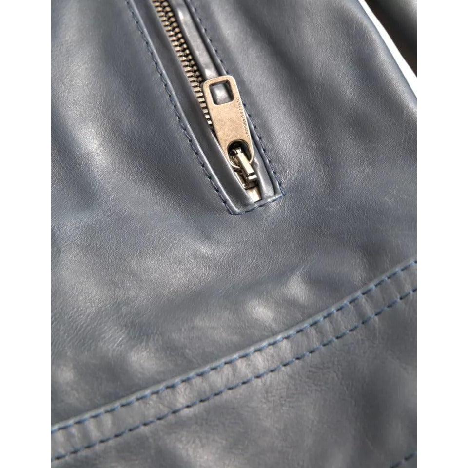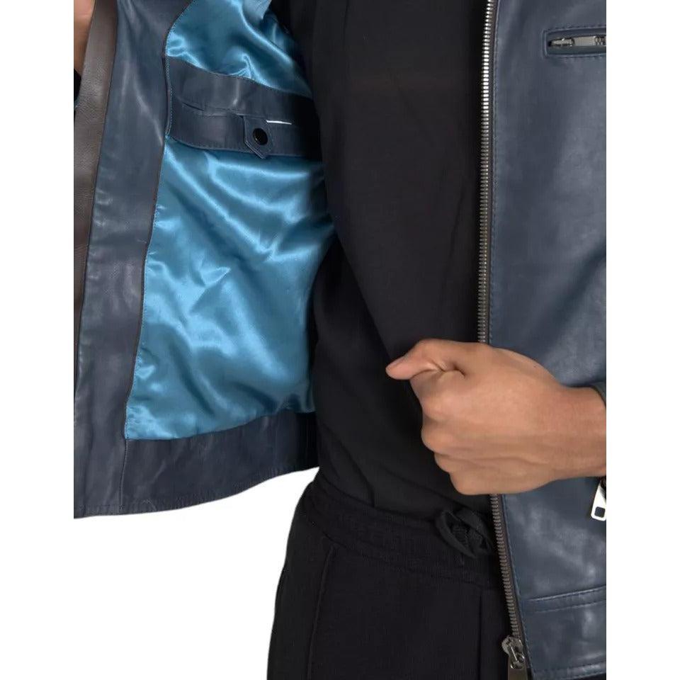 Dolce & Gabbana Blue Leather Full Zip Biker Blouson Jacket