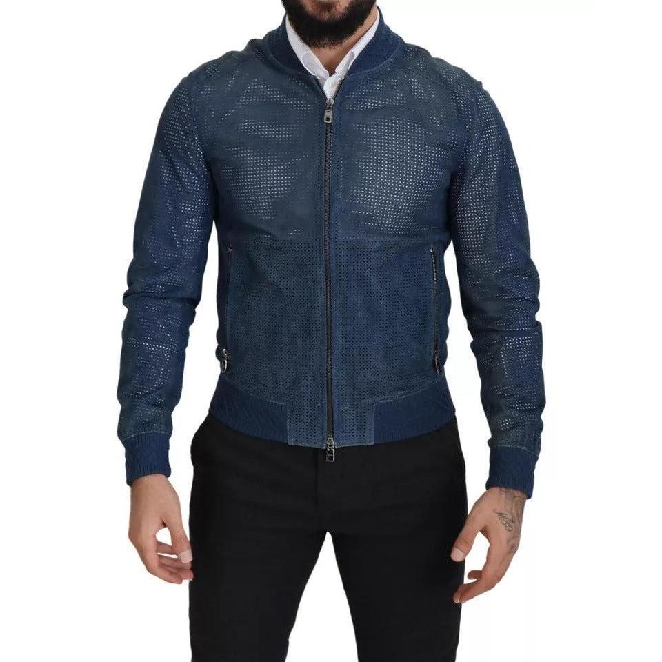 Dolce & Gabbana Blue Leather Perforated Full Zip Jacket