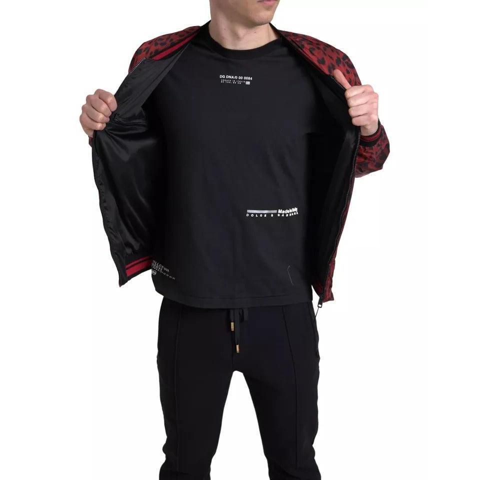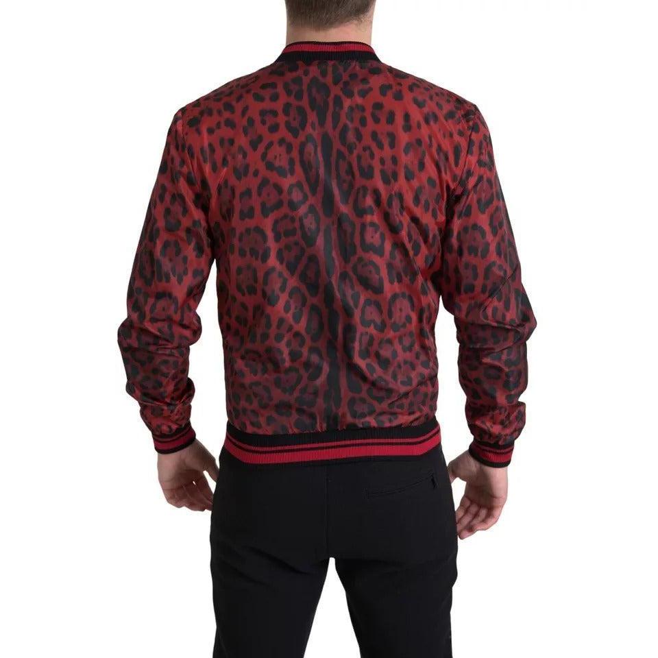Dolce & Gabbana Red Leopard Bomber Short Coat Jacket