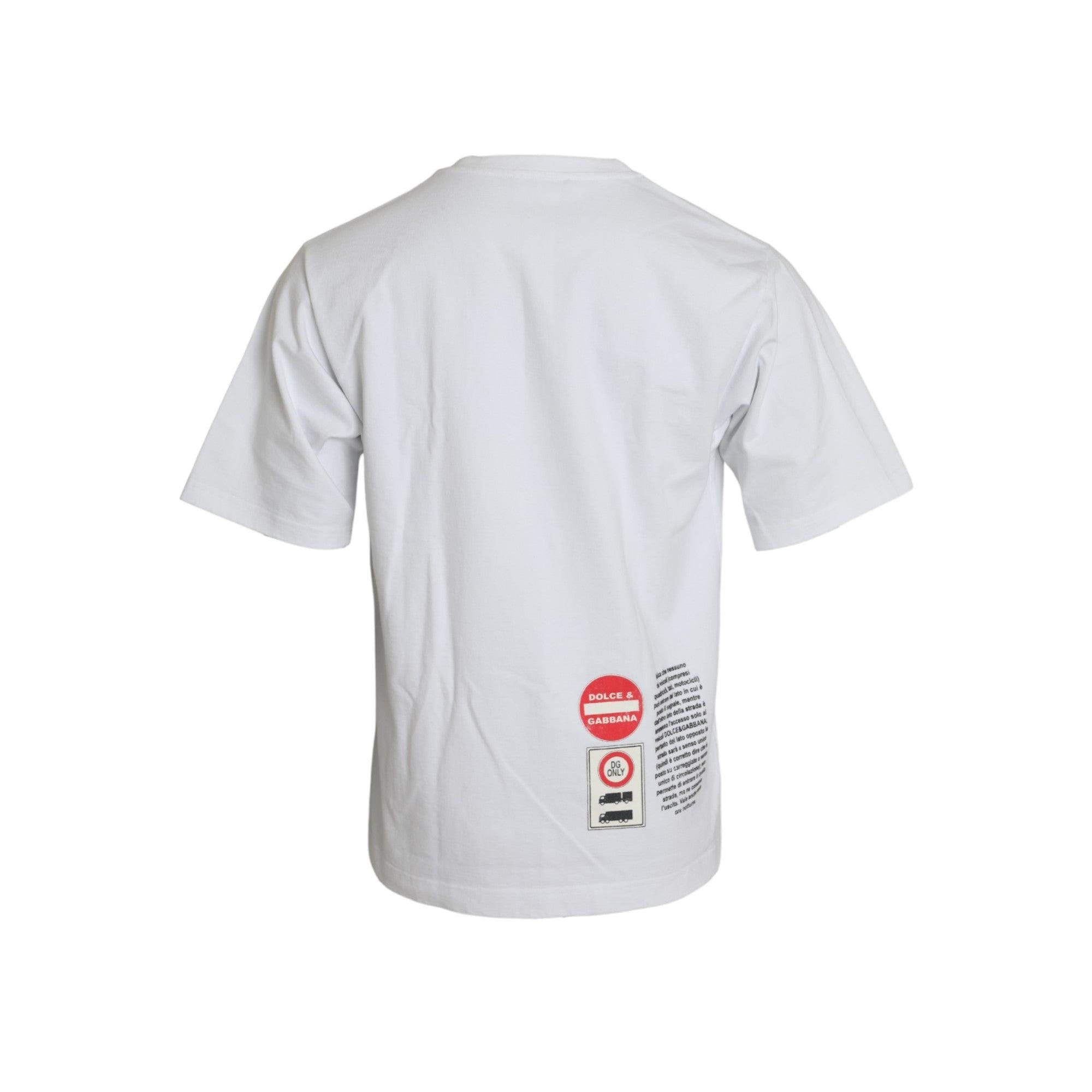 Dolce & Gabbana White Logo Embossed Cotton Crewneck T-shirt