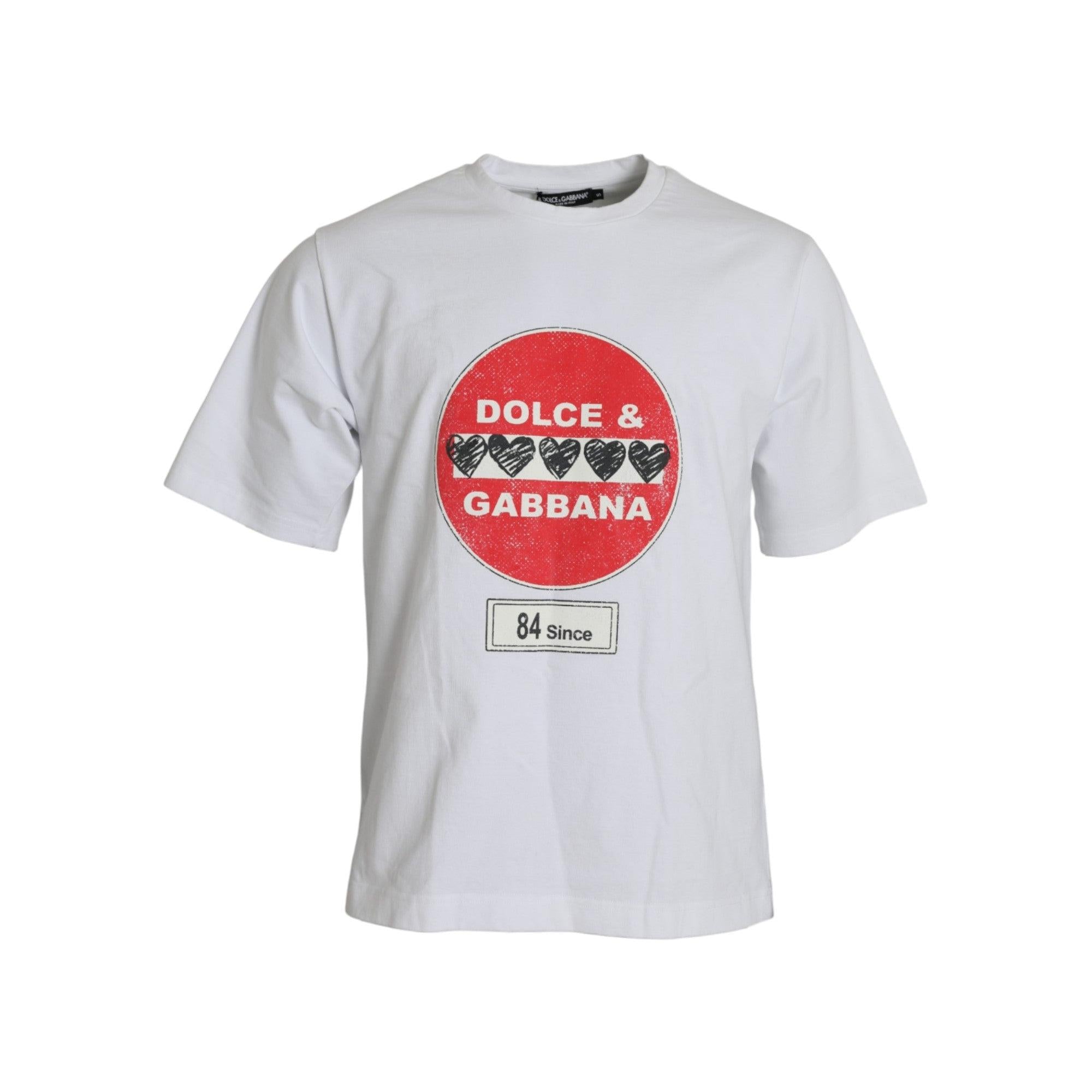 Dolce & Gabbana White Amor Heart Cotton Crewneck Short Sleeve T-shirt