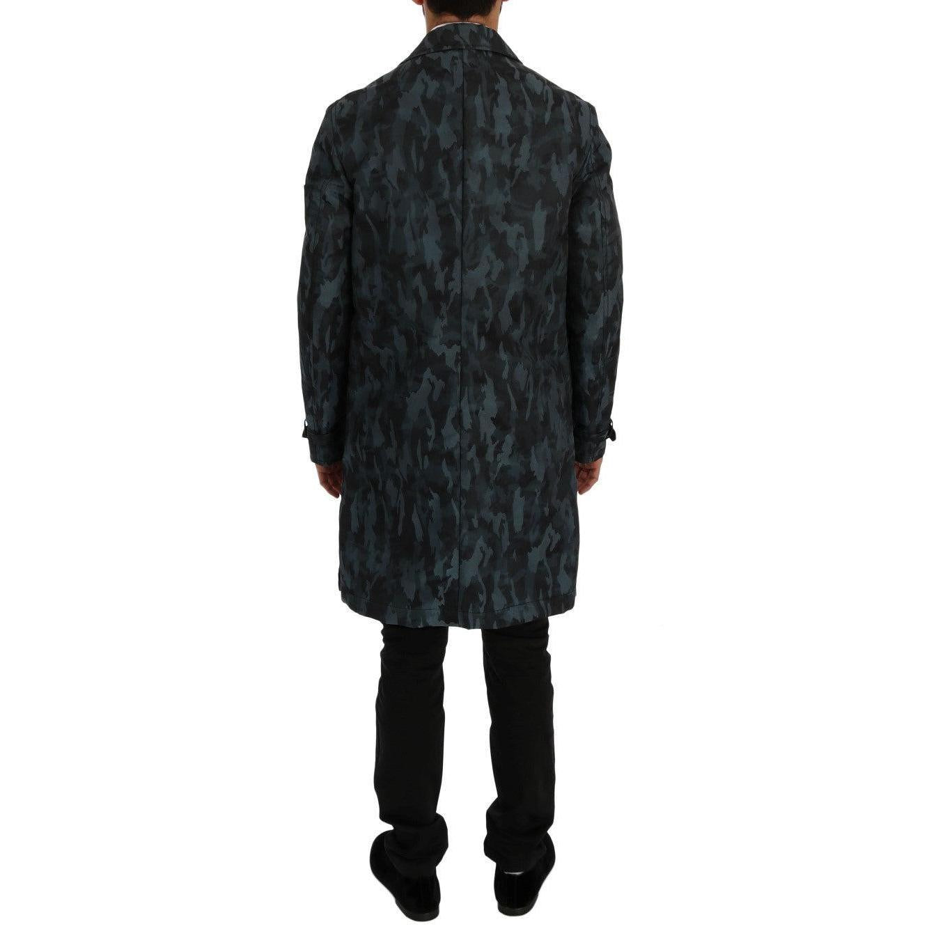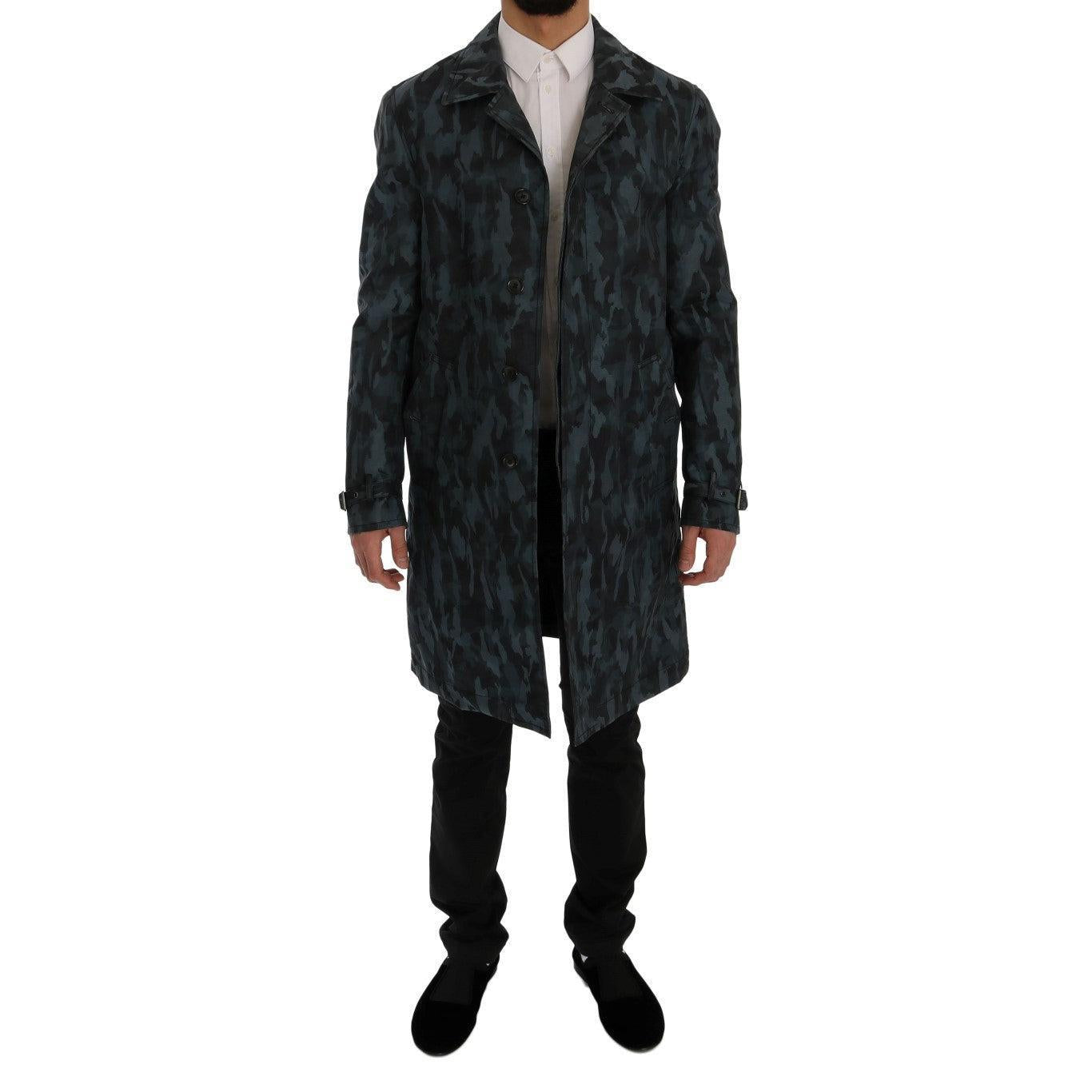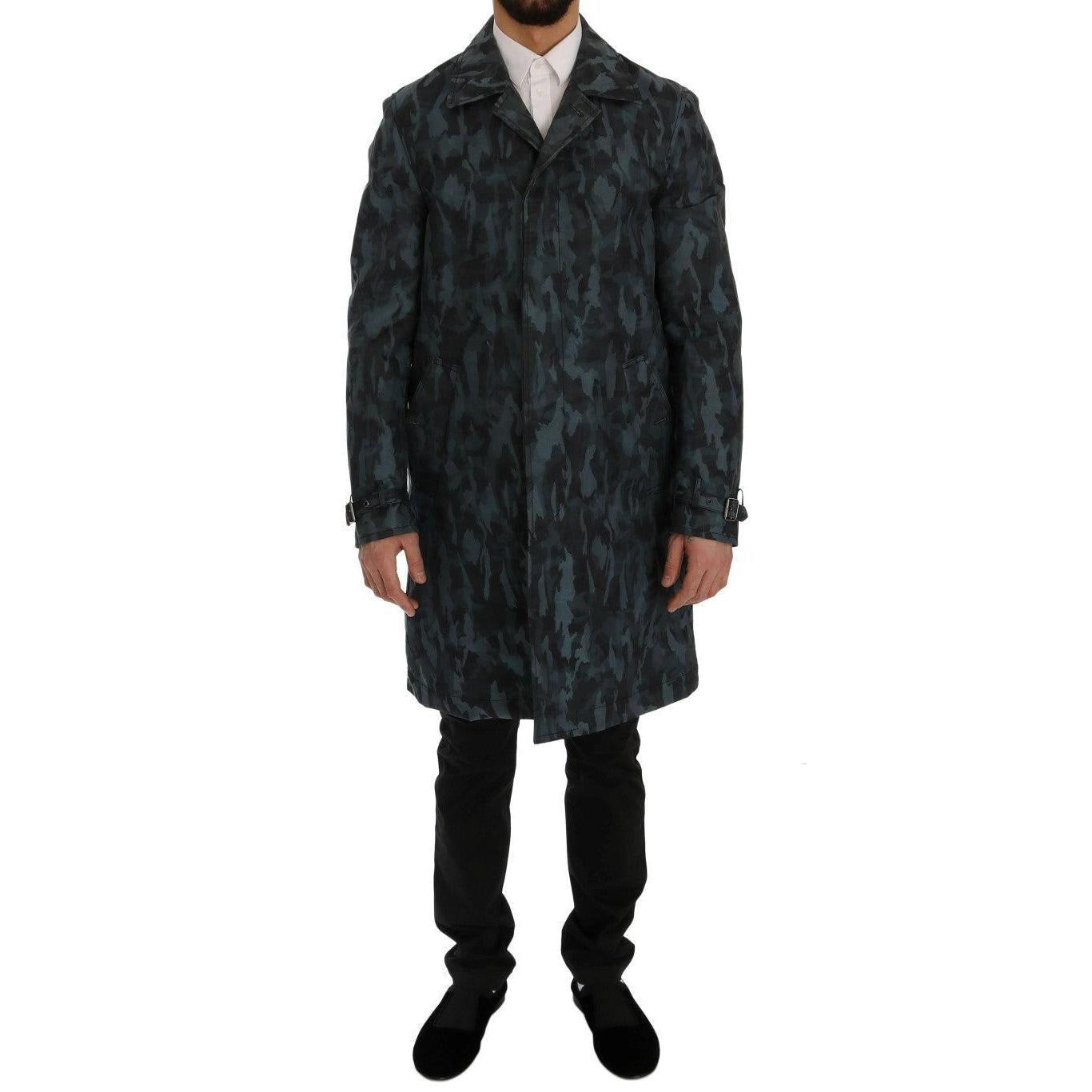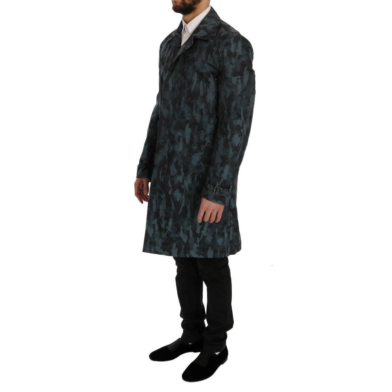Dolce & Gabbana Blue Camouflage Trench Coat Elegance