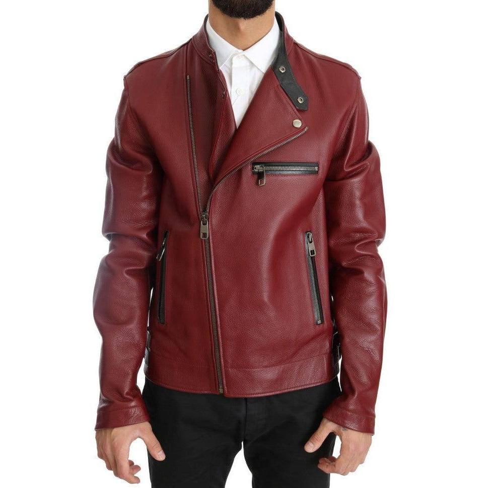 Dolce & Gabbana Radiant Red Leather Biker Motorcycle Jacket