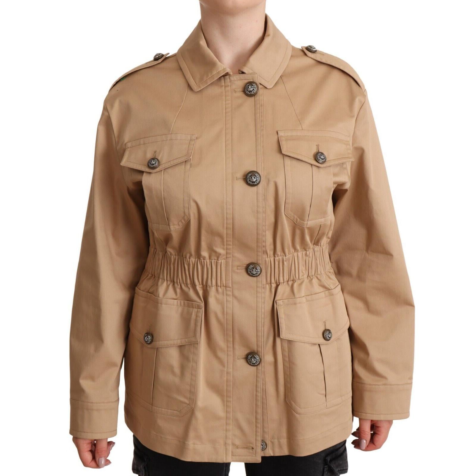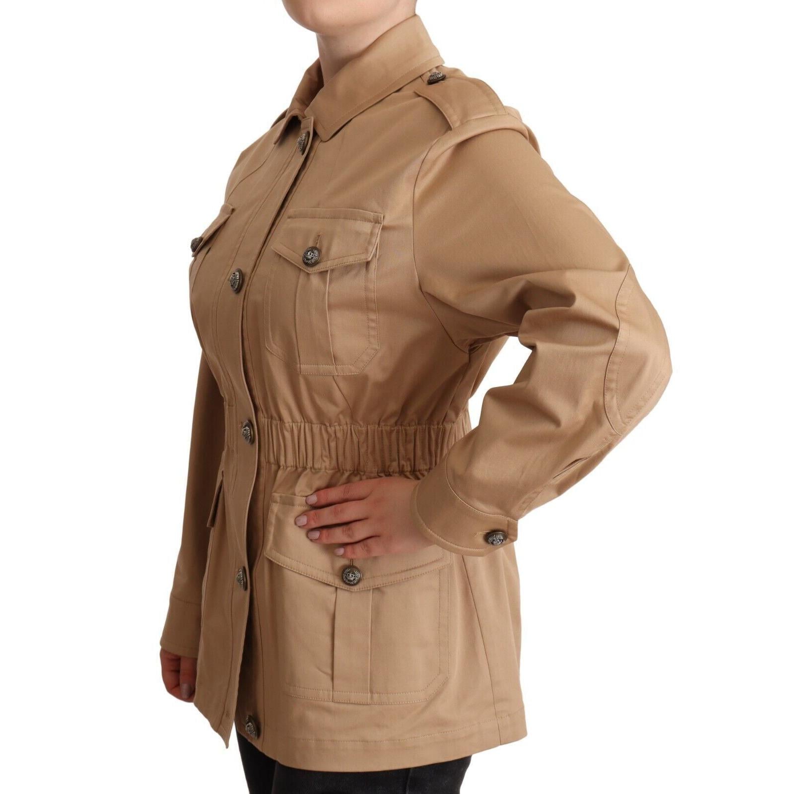 Dolce & Gabbana Chic Beige Button Down Coat with Embellishments