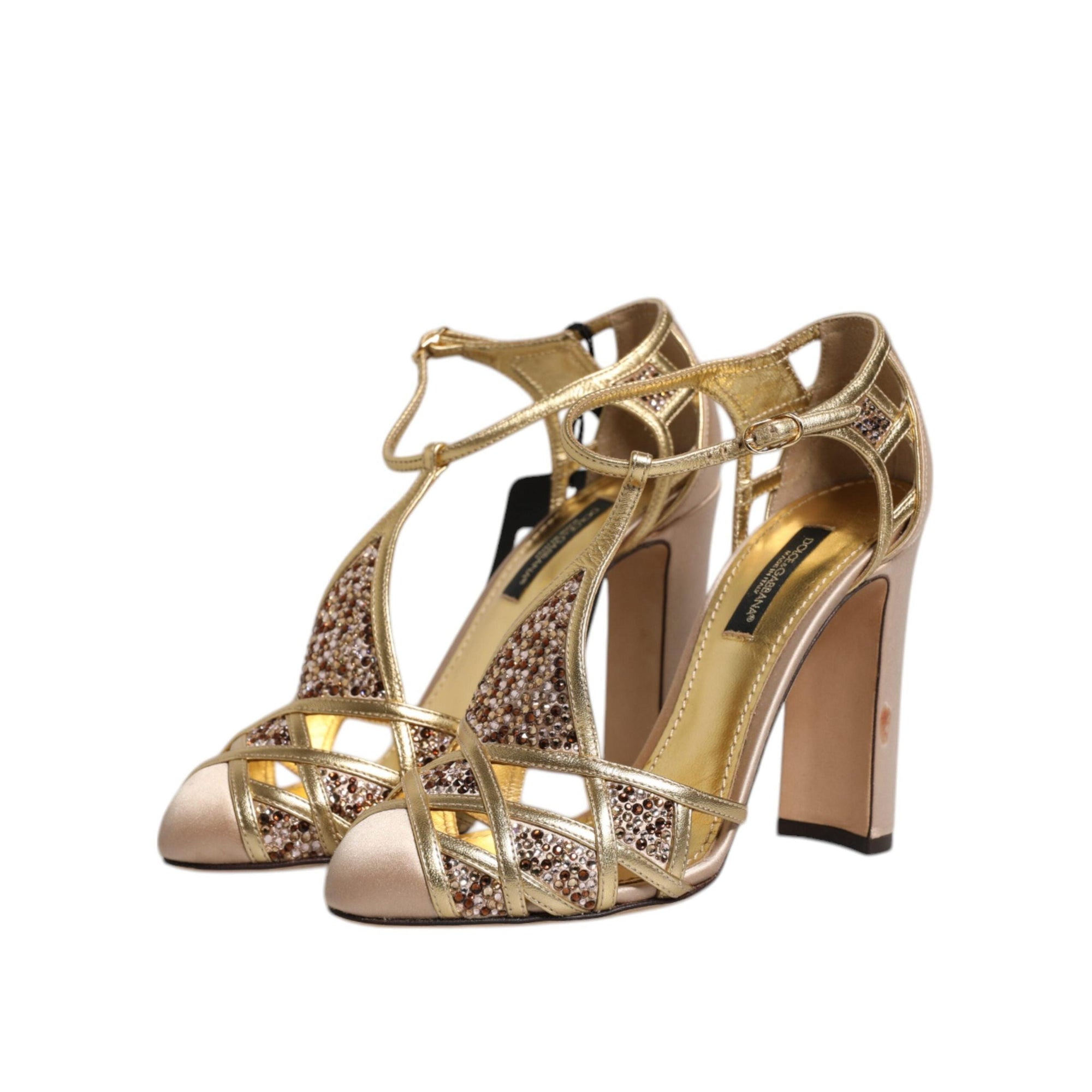 Dolce & Gabbana Beige Crystal Embellished Satin Leather Pumps Shoes